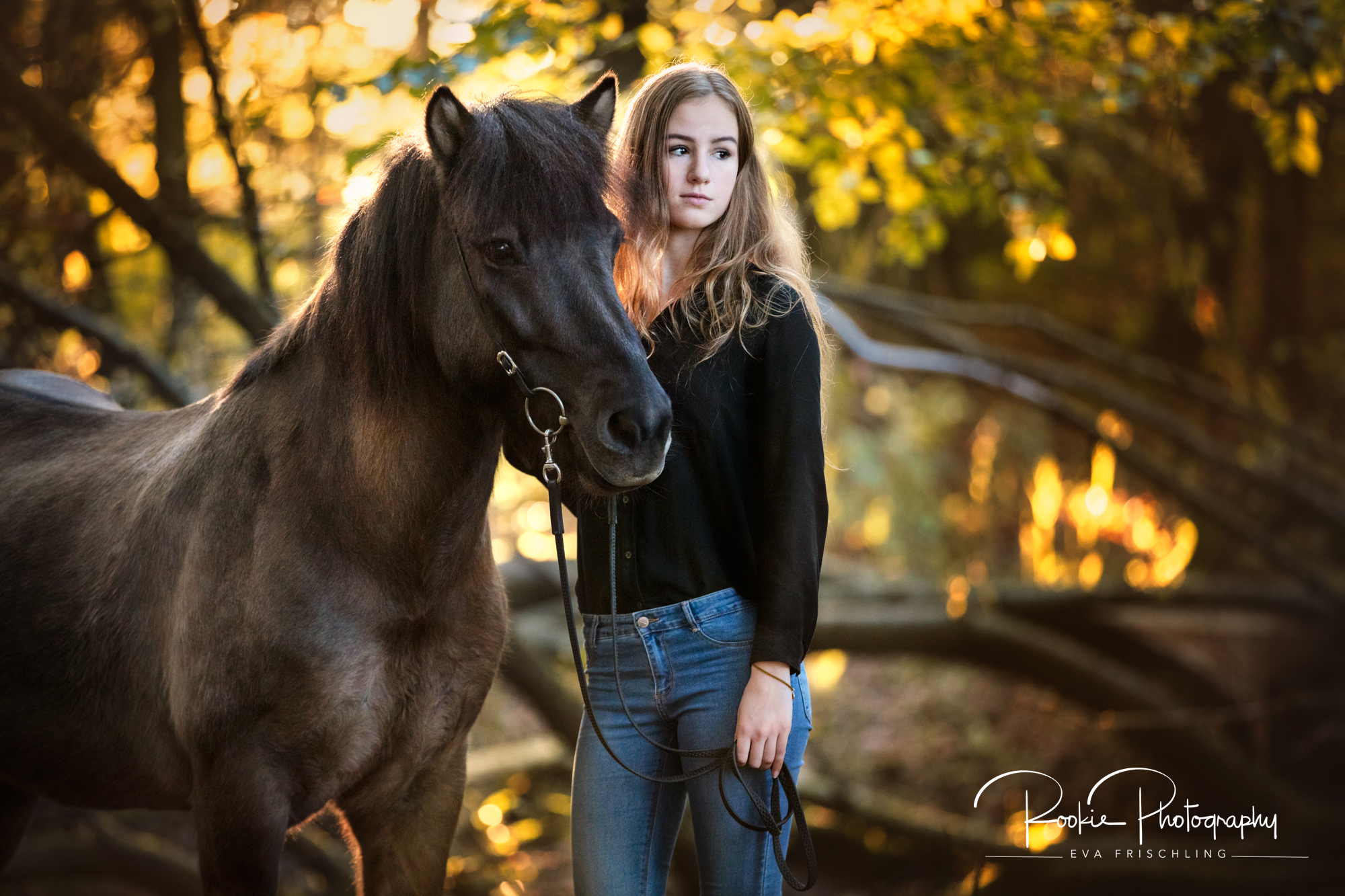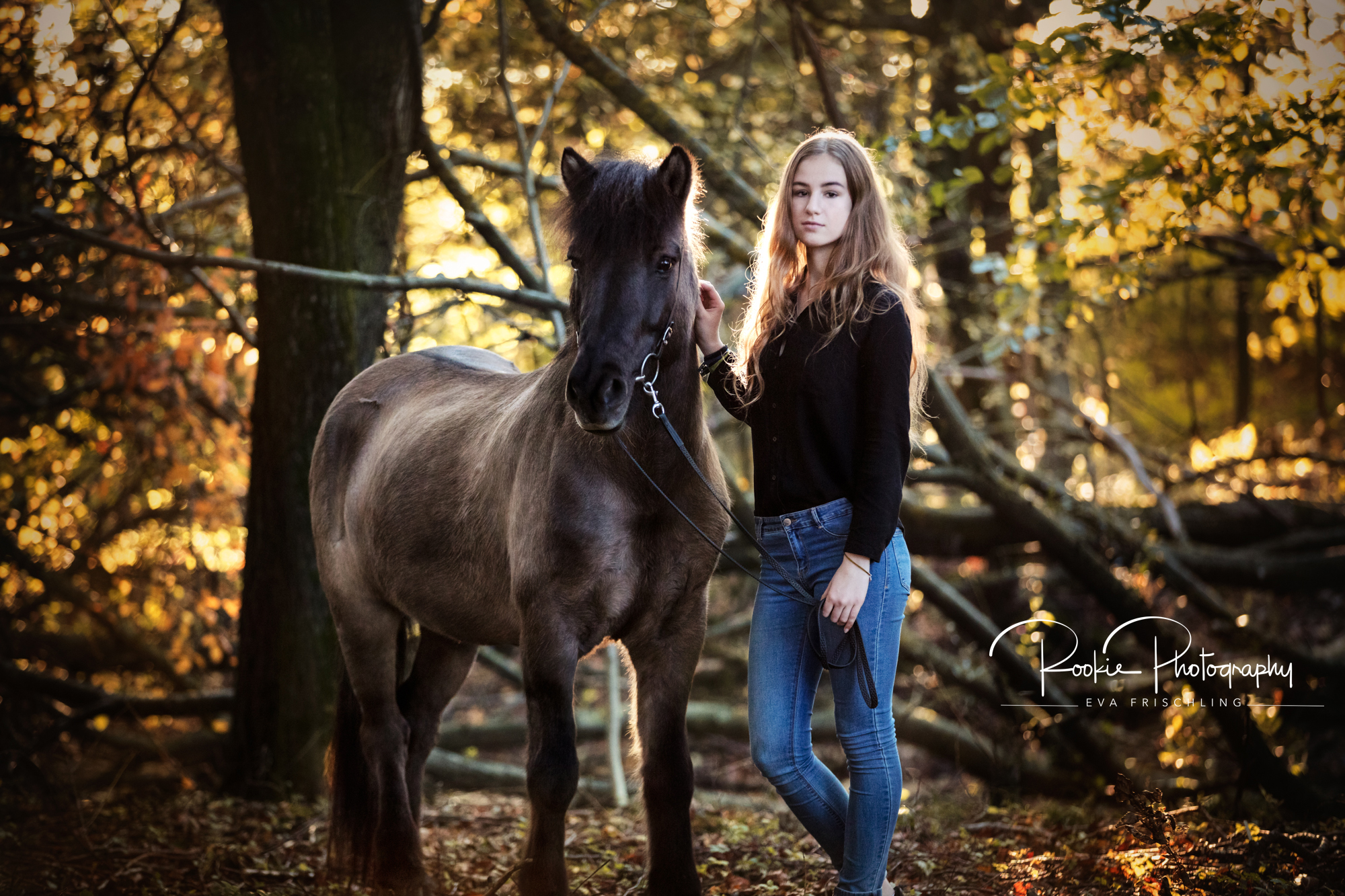 Im Oktober, an einem wunderschönen Herbsttag, durfte ich Maya mit ihrer Stute Stilla und Leihpferd Hrolfur fotografieren. Wir gingen ein kleines Stück in einen nahe gelegenen Wald und ließen uns von der untergehenden Sonne beleuchten. Was für eine Stimmung.