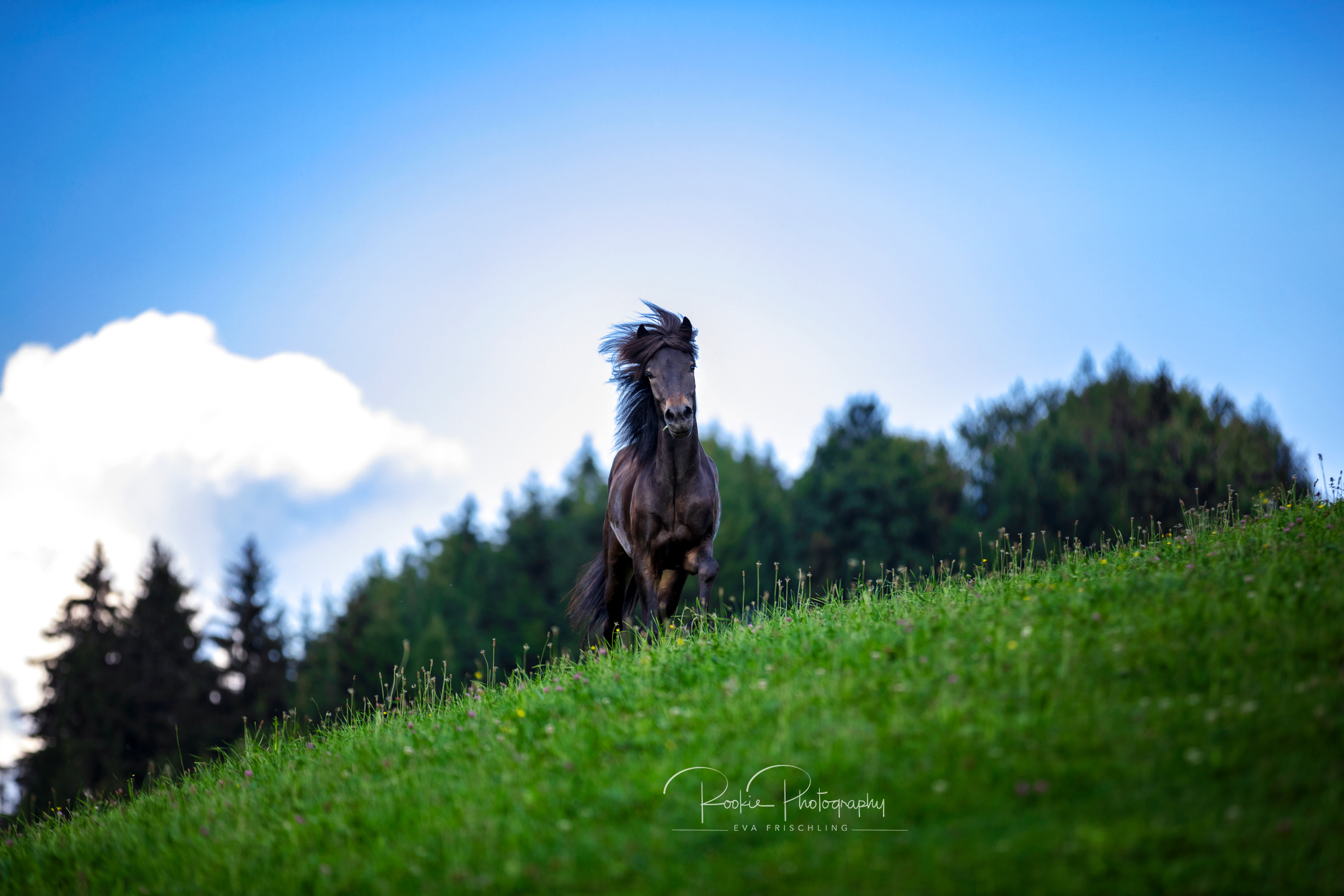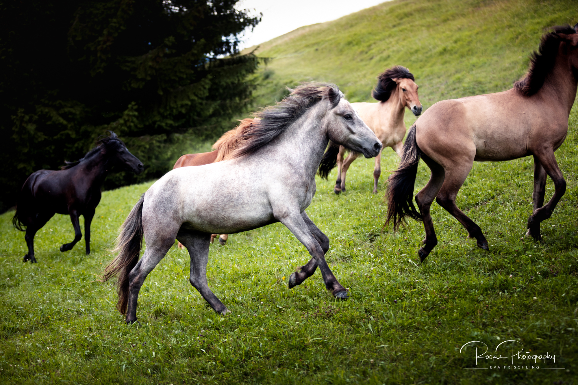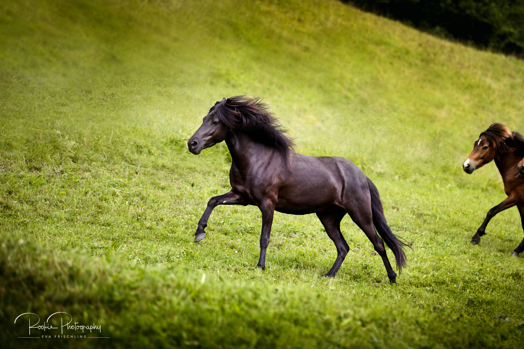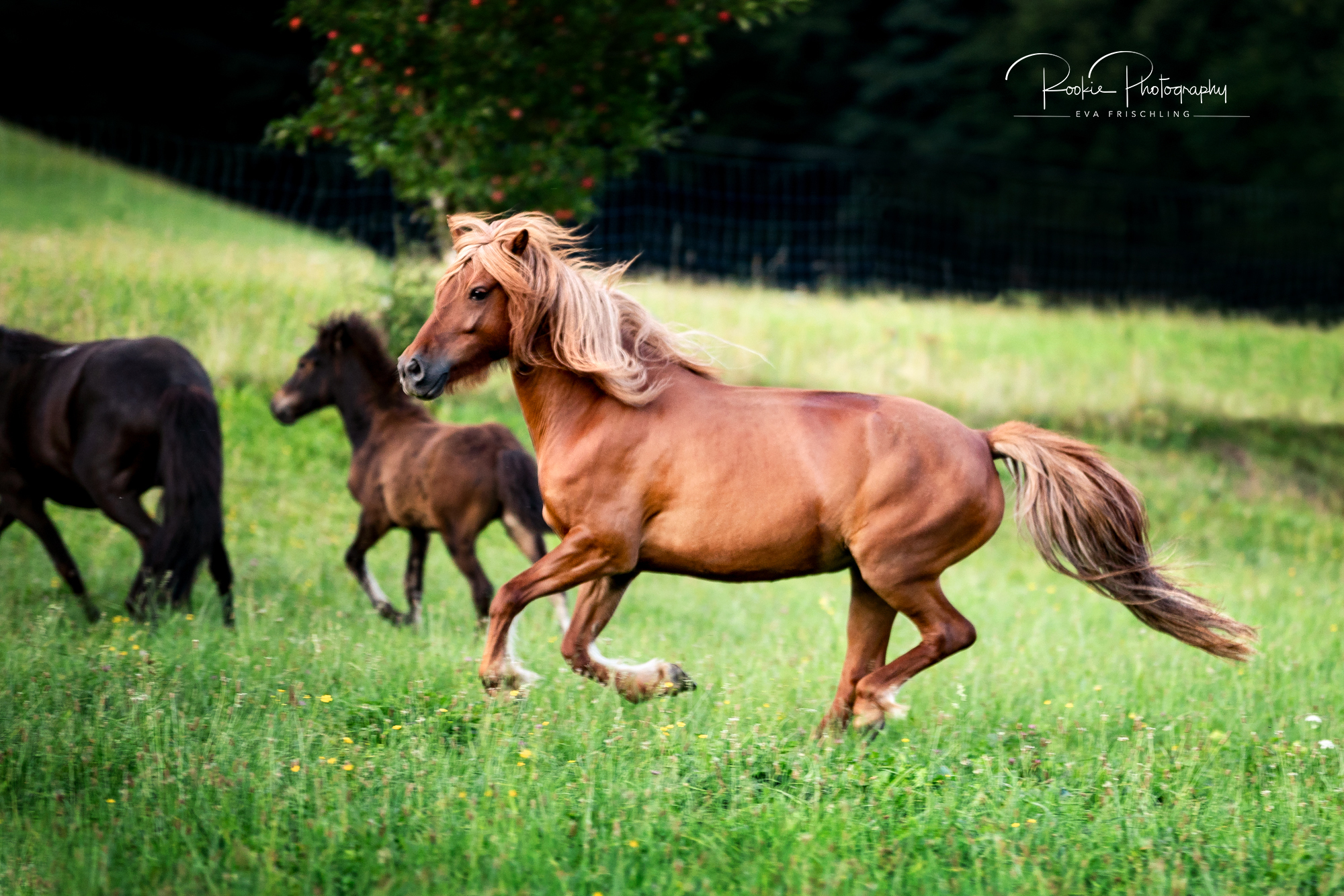 Einige der Stuten standen die ersten Wochen des Sommers auf der eigenen Alm vom Oberbichlhof. Im späten Sommer wurde Elja mit ihrem Fohlen Vindsvalur an den Stall gestellt , und die anderen beiden Stuten mit Fohlen an eine andere, super saftige Wiese gefahren. Hier machte ich noch ein paar Bilder für den Verkaufspferdekatalog.