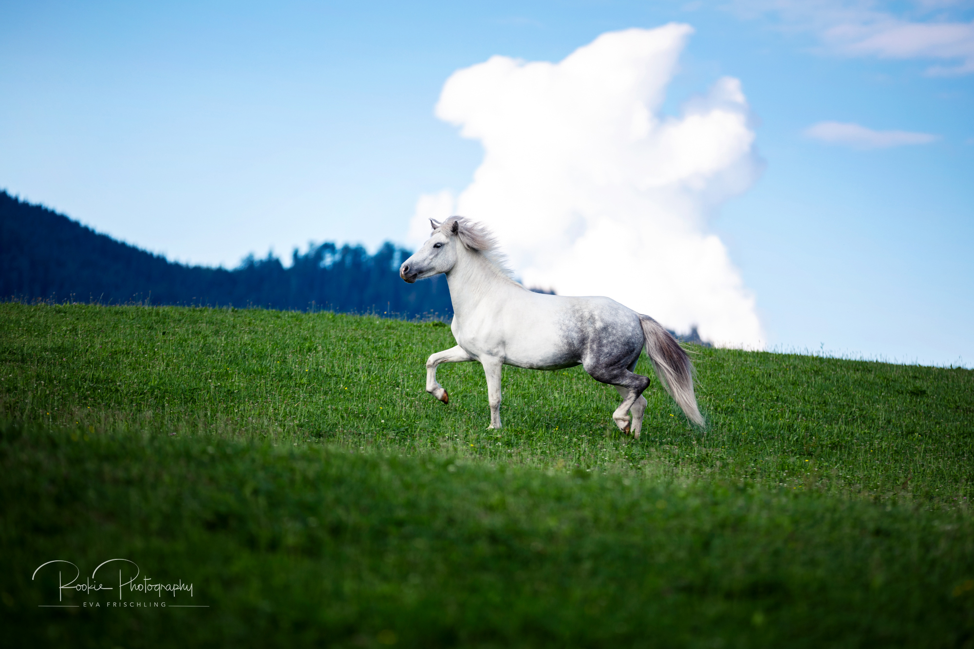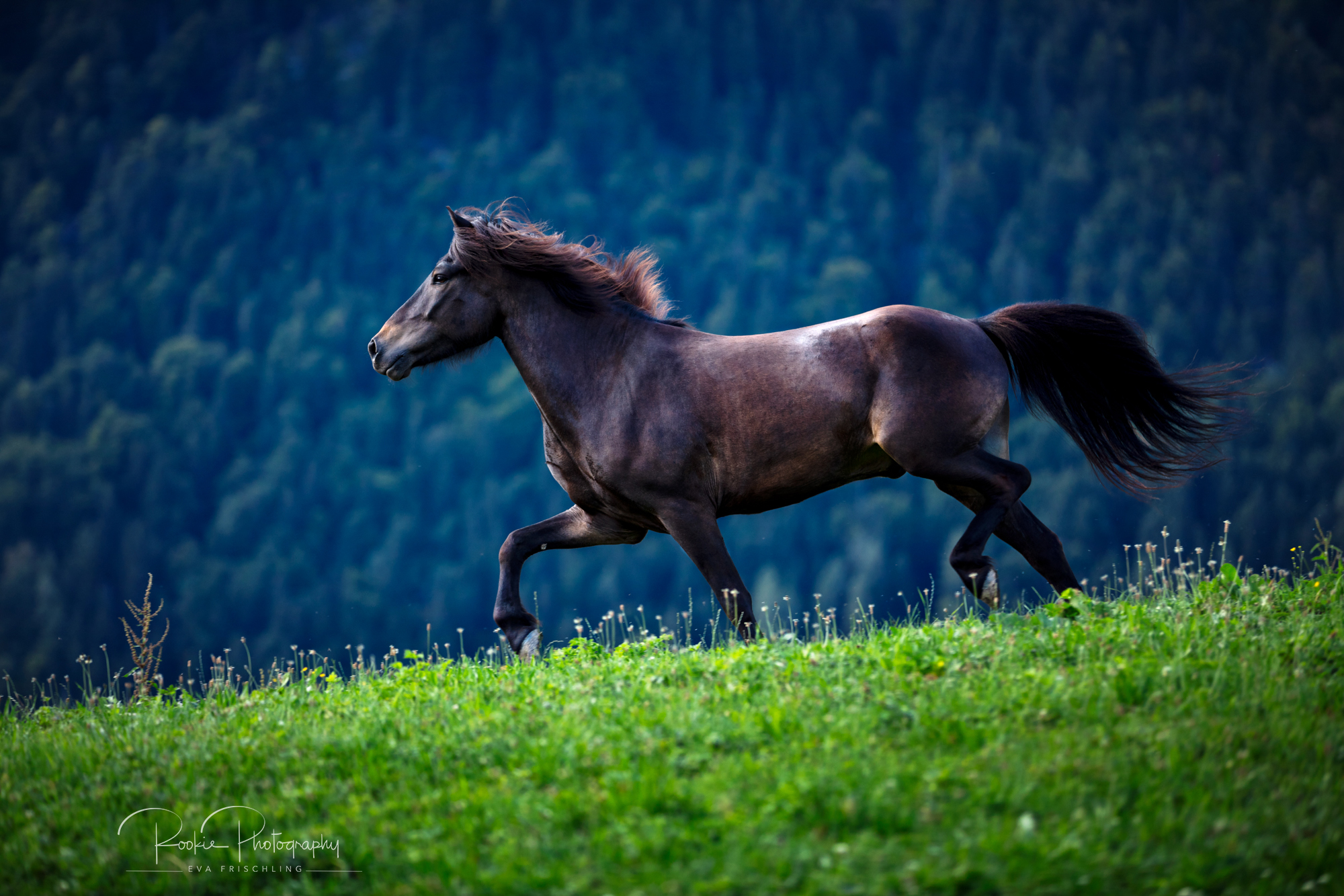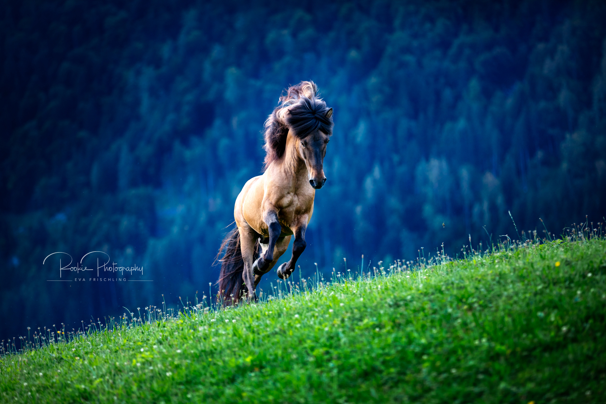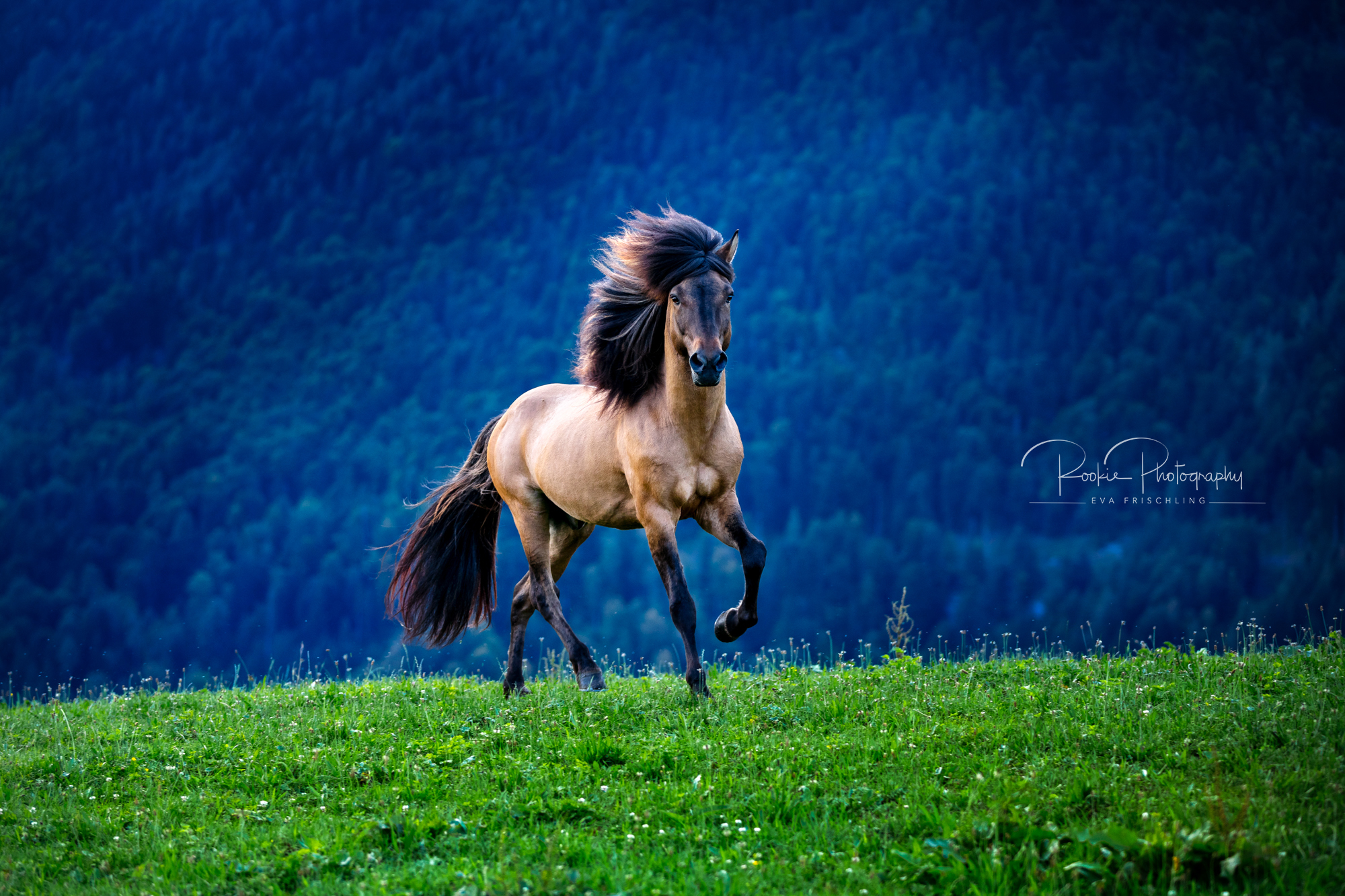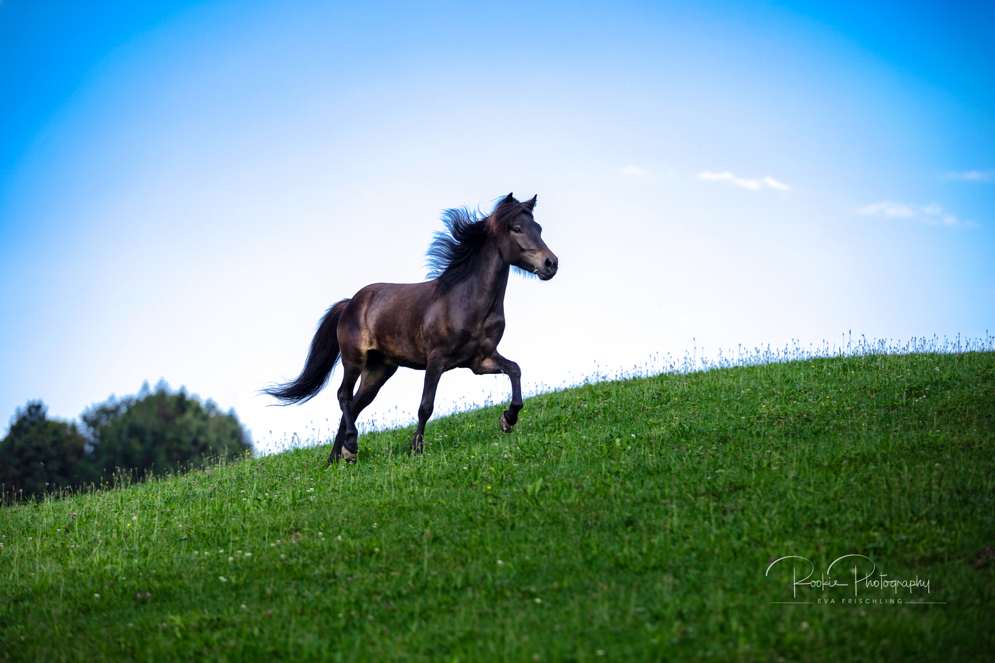 Einige der Stuten standen die ersten Wochen des Sommers auf der eigenen Alm vom Oberbichlhof. Im späten Sommer wurde Elja mit ihrem Fohlen Vindsvalur an den Stall gestellt , und die anderen beiden Stuten mit Fohlen an eine andere, super saftige Wiese gefahren. Hier machte ich noch ein paar Bilder für den Verkaufspferdekatalog.