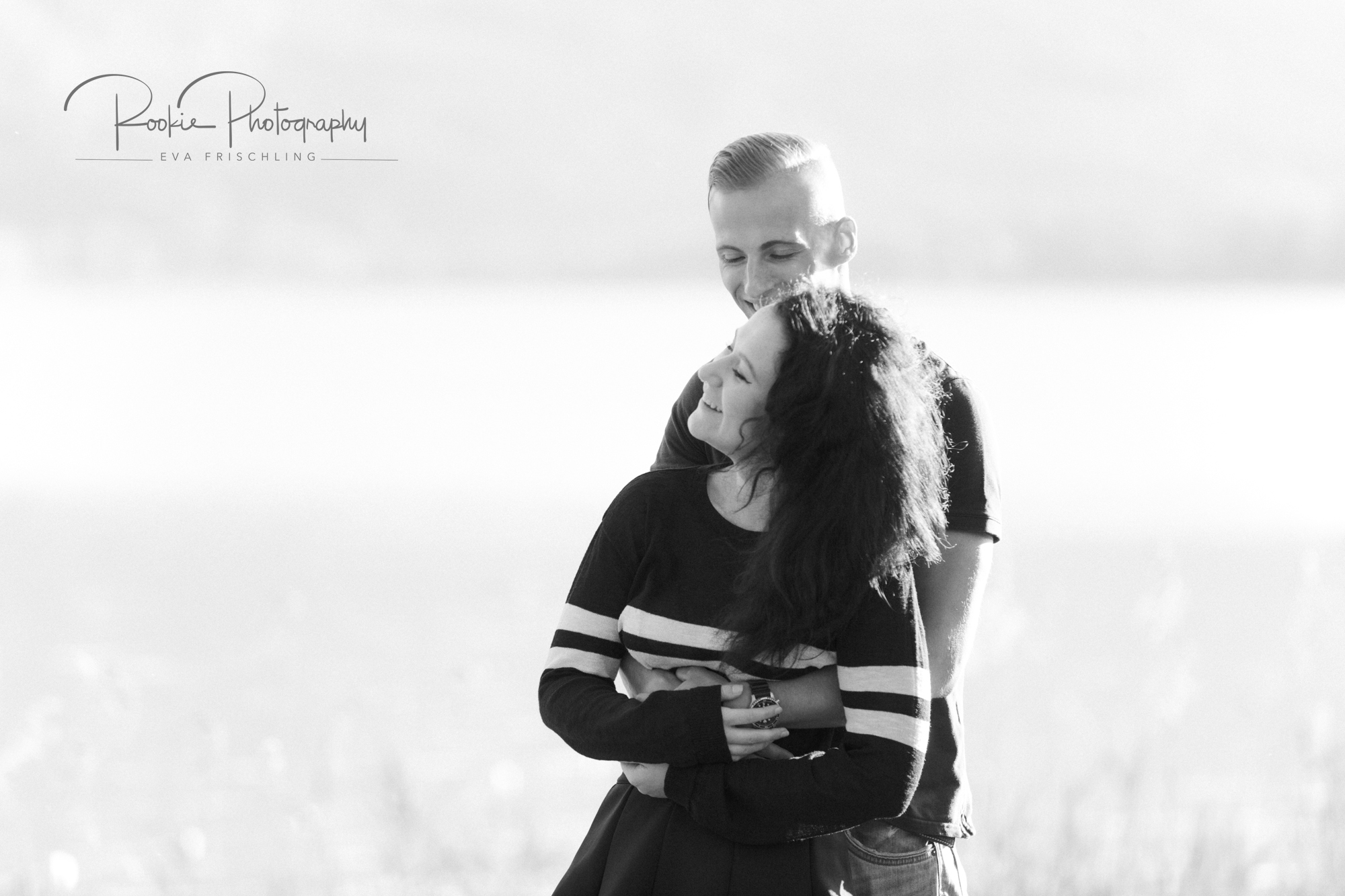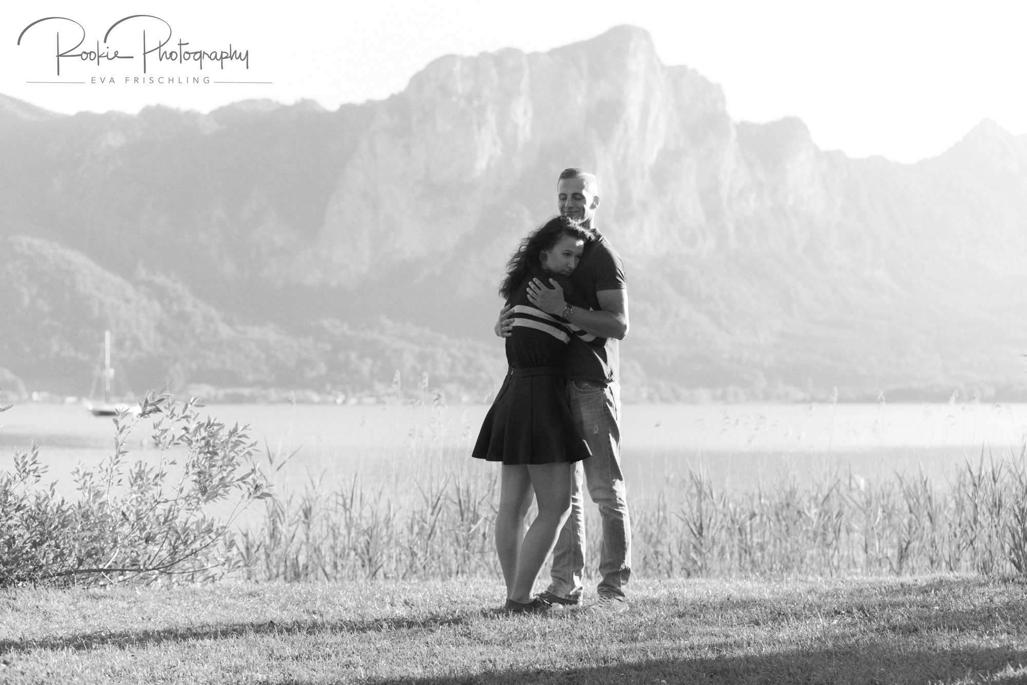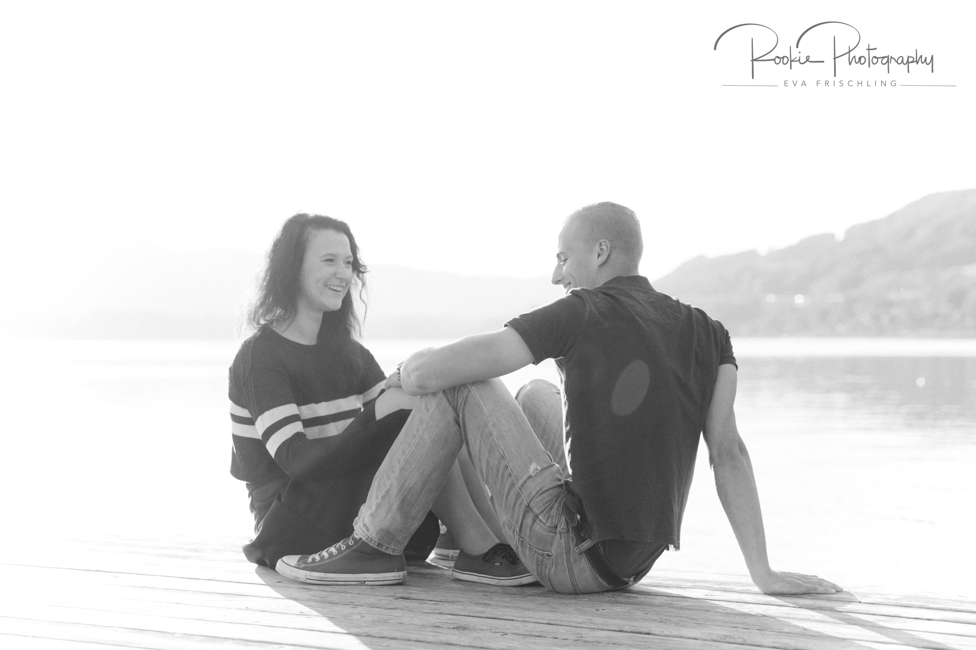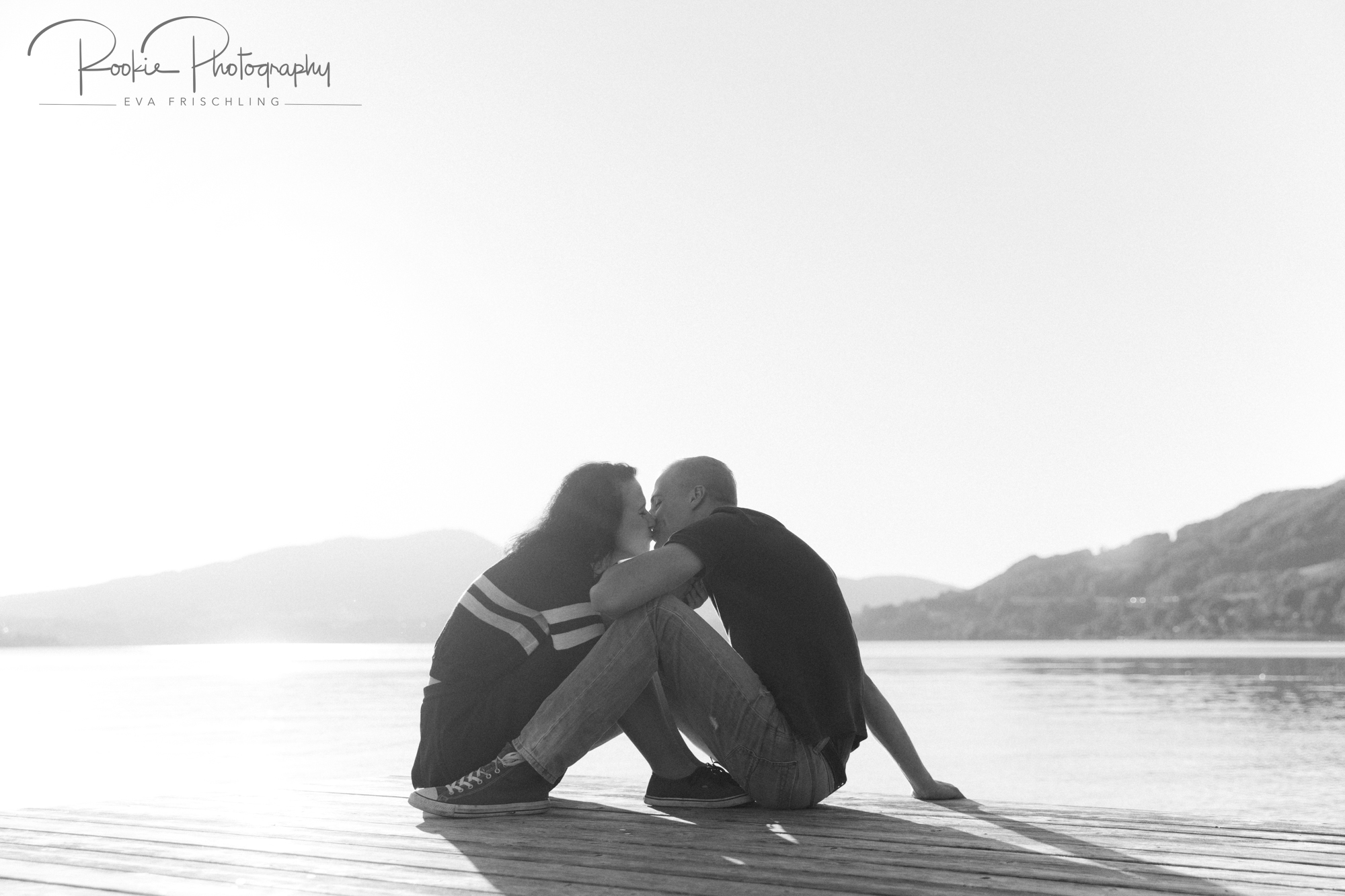 Einige Wochen später, Mitte Juni, fuhren wir dann gemeinsam zum Mondsee und machten dort bei unglaublich schönem Abendlicht absolut kitschige Bilder. Da die Zwei zusammen schon so unbeschreiblich süß sind, und dieses absolut kitschige Abendrot dann doch irgendwie zu viel Kitsch für meinen Geschmack war, machte ich kurzerhand eine Schwarzweiß Serie daraus.