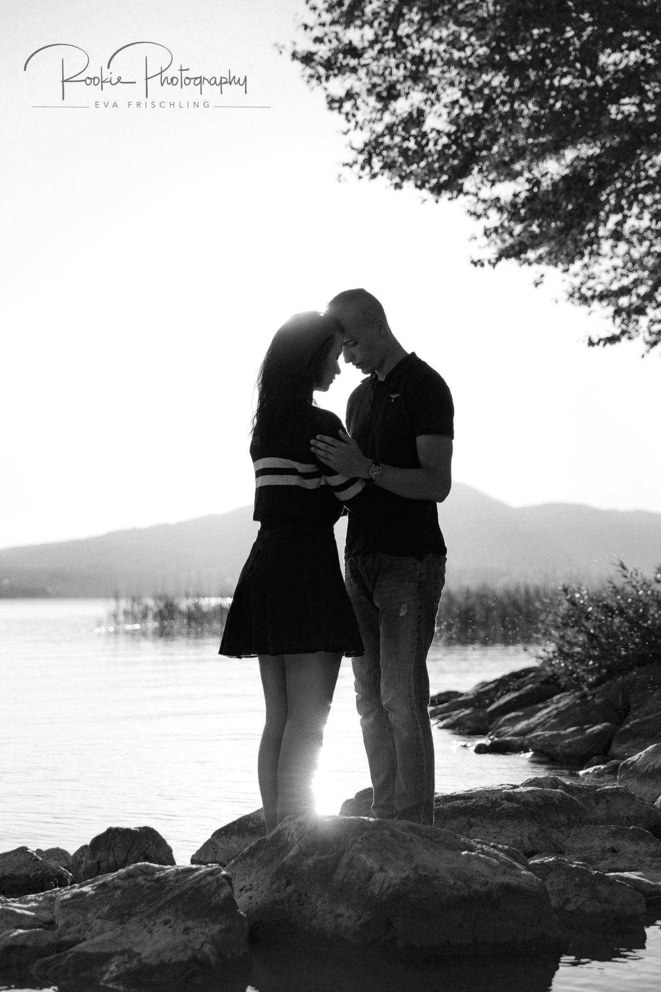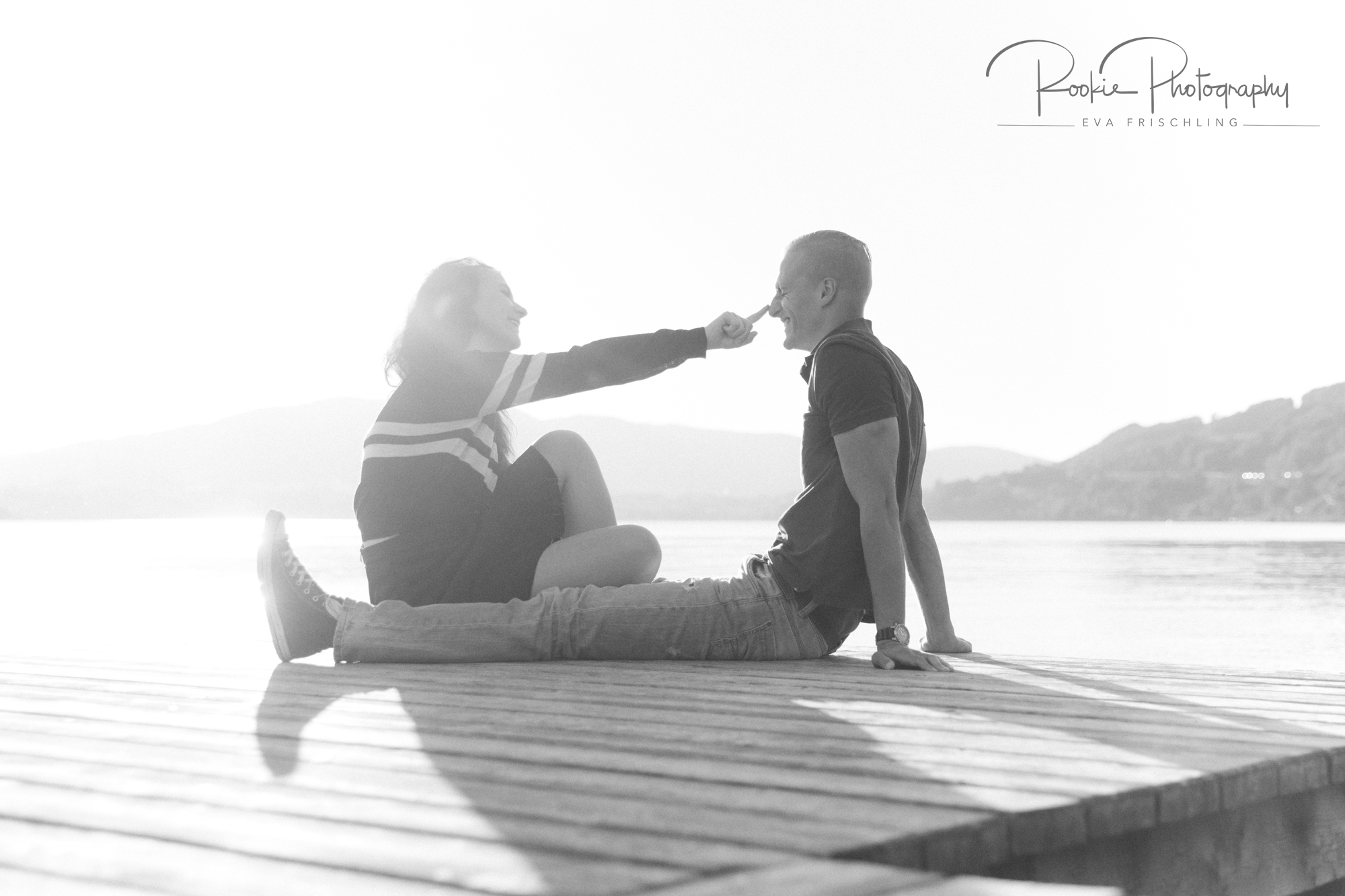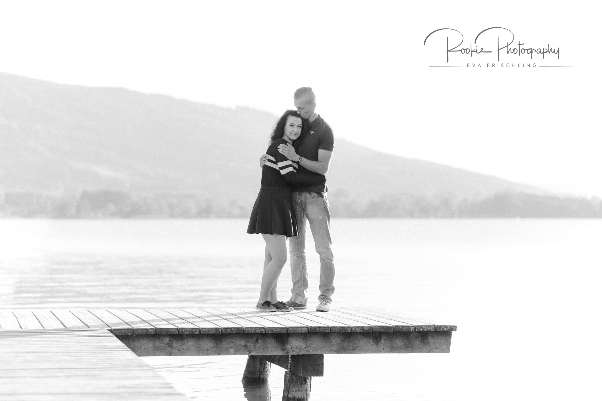 Einige Wochen später, Mitte Juni, fuhren wir dann gemeinsam zum Mondsee und machten dort bei unglaublich schönem Abendlicht absolut kitschige Bilder. Da die Zwei zusammen schon so unbeschreiblich süß sind, und dieses absolut kitschige Abendrot dann doch irgendwie zu viel Kitsch für meinen Geschmack war, machte ich kurzerhand eine Schwarzweiß Serie daraus.