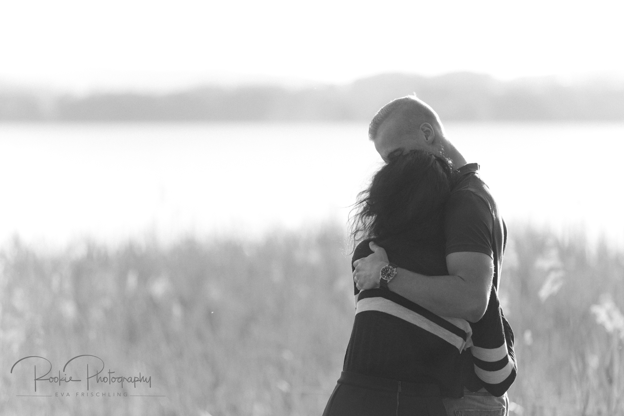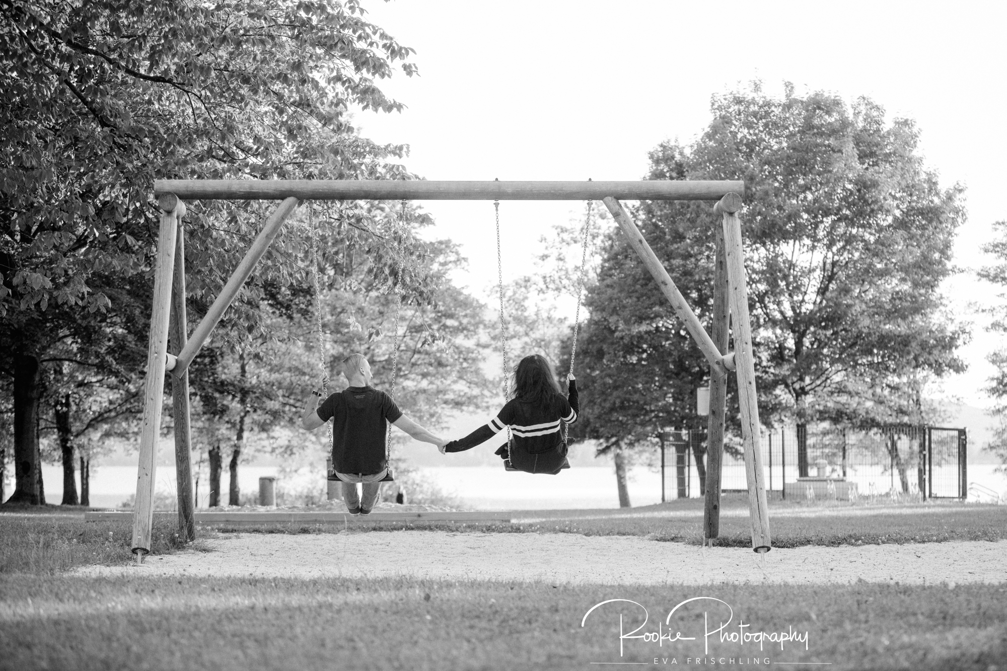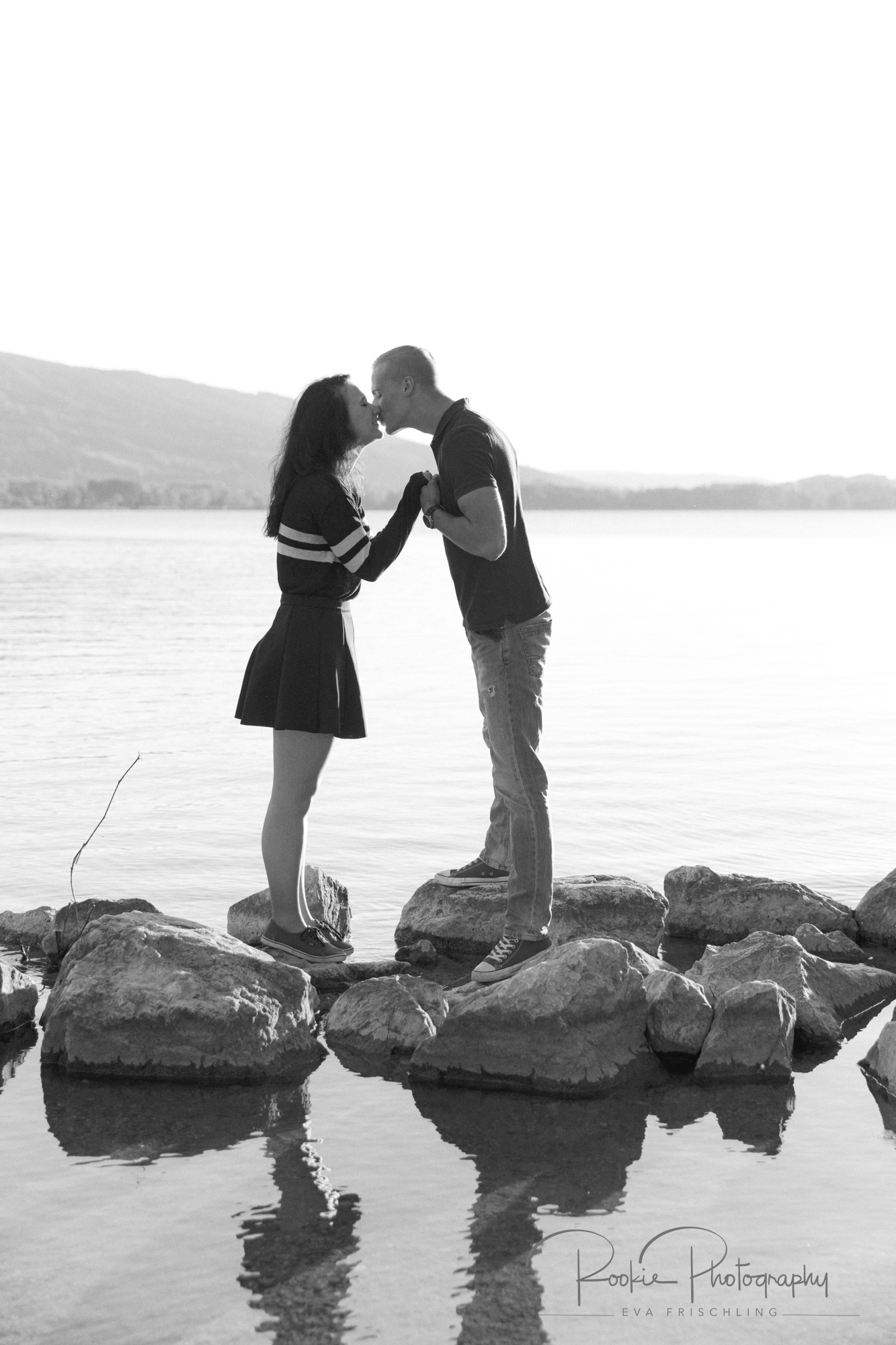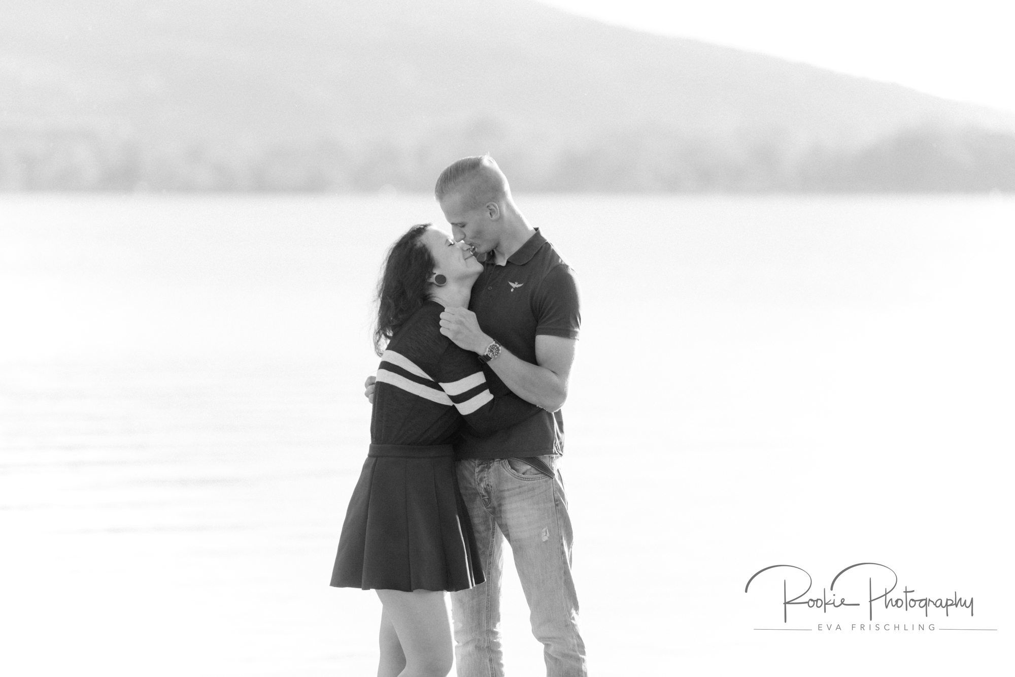 Einige Wochen später, Mitte Juni, fuhren wir dann gemeinsam zum Mondsee und machten dort bei unglaublich schönem Abendlicht absolut kitschige Bilder. Da die Zwei zusammen schon so unbeschreiblich süß sind, und dieses absolut kitschige Abendrot dann doch irgendwie zu viel Kitsch für meinen Geschmack war, machte ich kurzerhand eine Schwarzweiß Serie daraus.