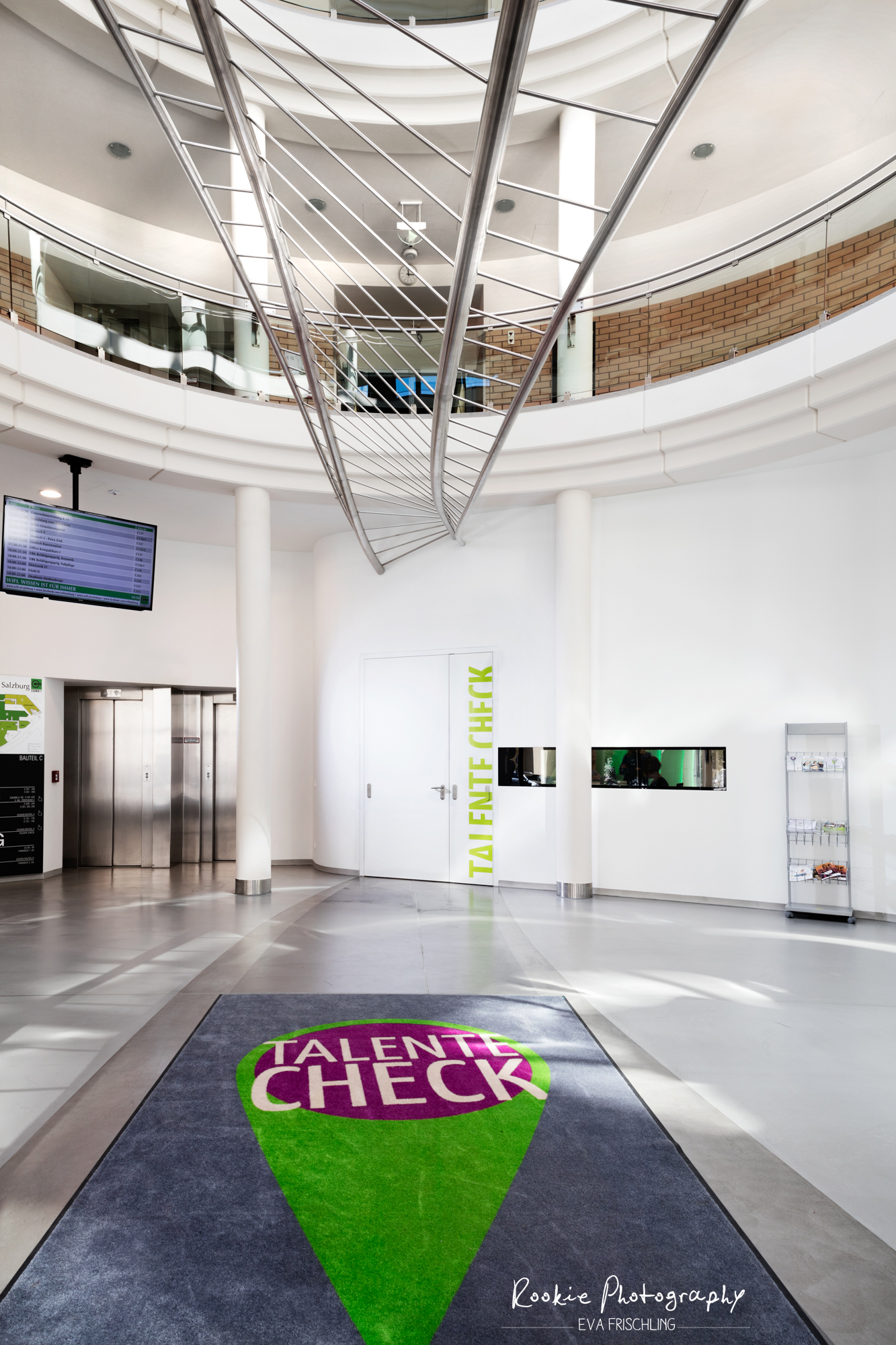 Die praktische Prüfung war in 5 Teile unterteilt: 1 Architektur Polaroid, welches wir mit der Fachkamera gemacht haben; 2 Architektur Bilder – davon eines vom Bildungs-Check im Wifi, und eine Detail Aufnahme; 1 Produkt Bild, welches wir freistellen und auf einen bestehenden Hintergrund montieren mussten; 2 Portrait-Bilder – eines in Farbe, eines in schwarz-weiß; 3 Mode-Bilder.