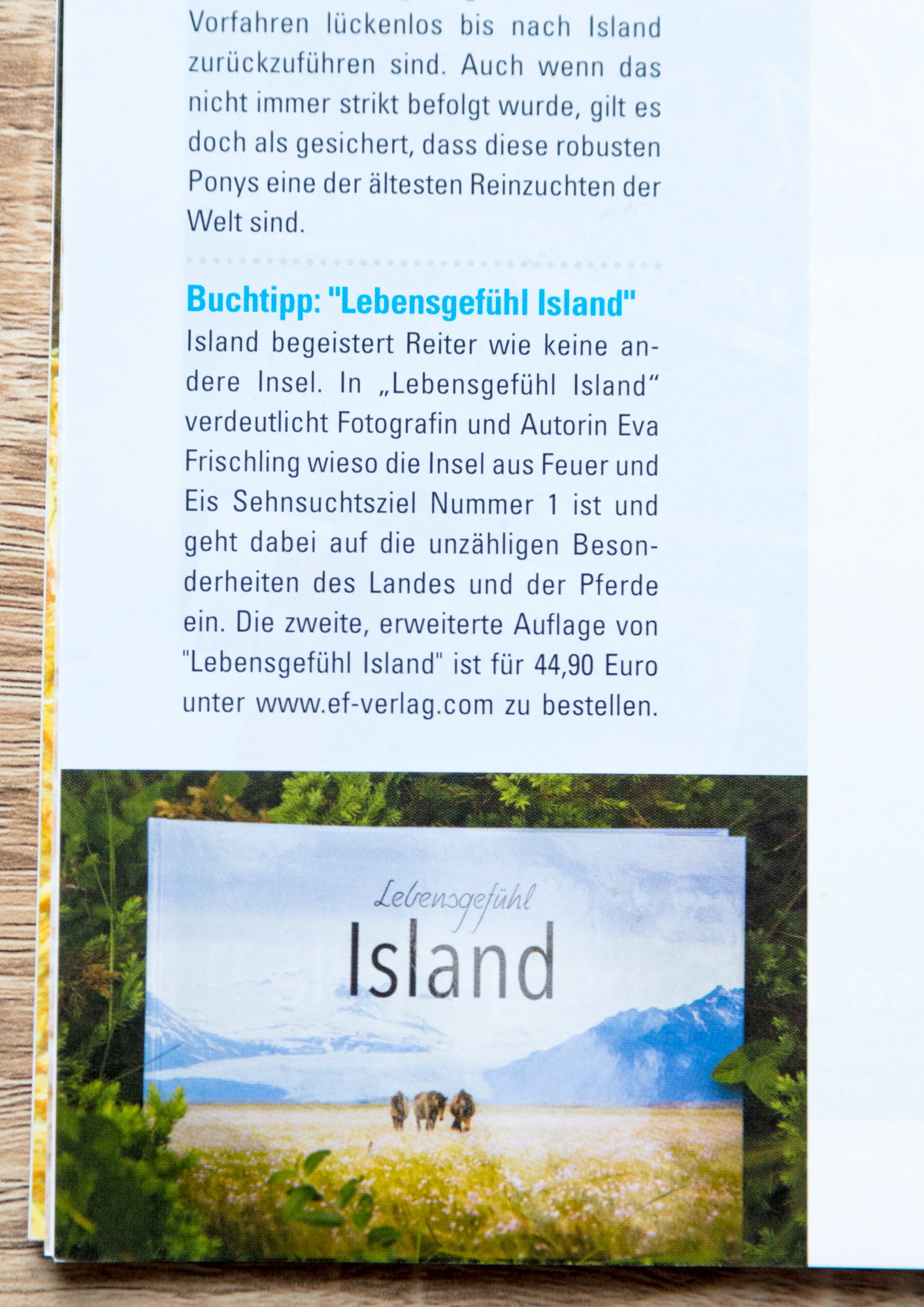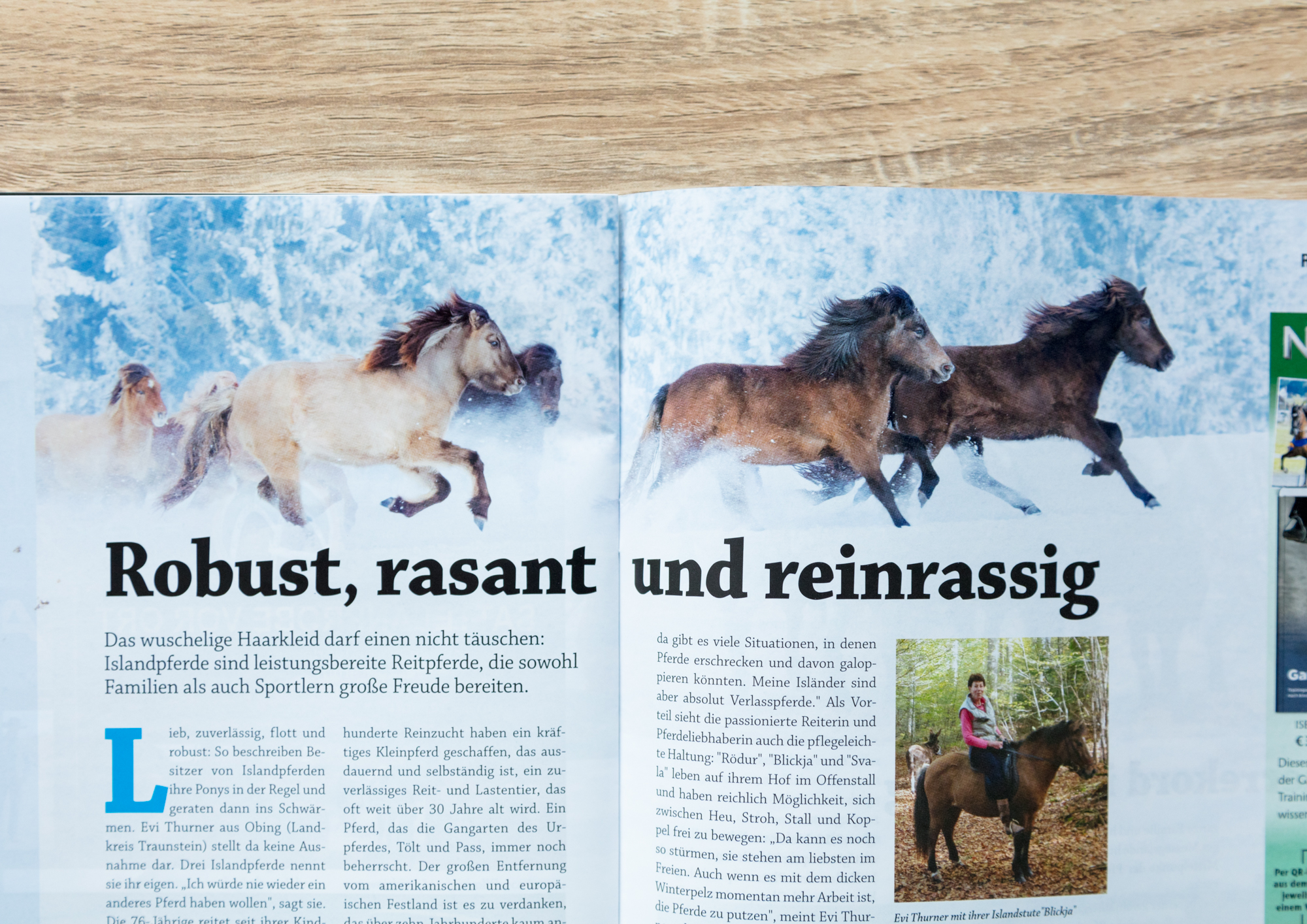 Im Reiter Kurier vom Februar zierte Constanze mit Málmur den Titel, und innen drinnen gab’s noch eine Vorstellung der Islandpferde mit einem weiteren Bild von mir. Ein Buchtipp von meinem Buch durfte dabei natürlich auch nicht fehlen. 😉