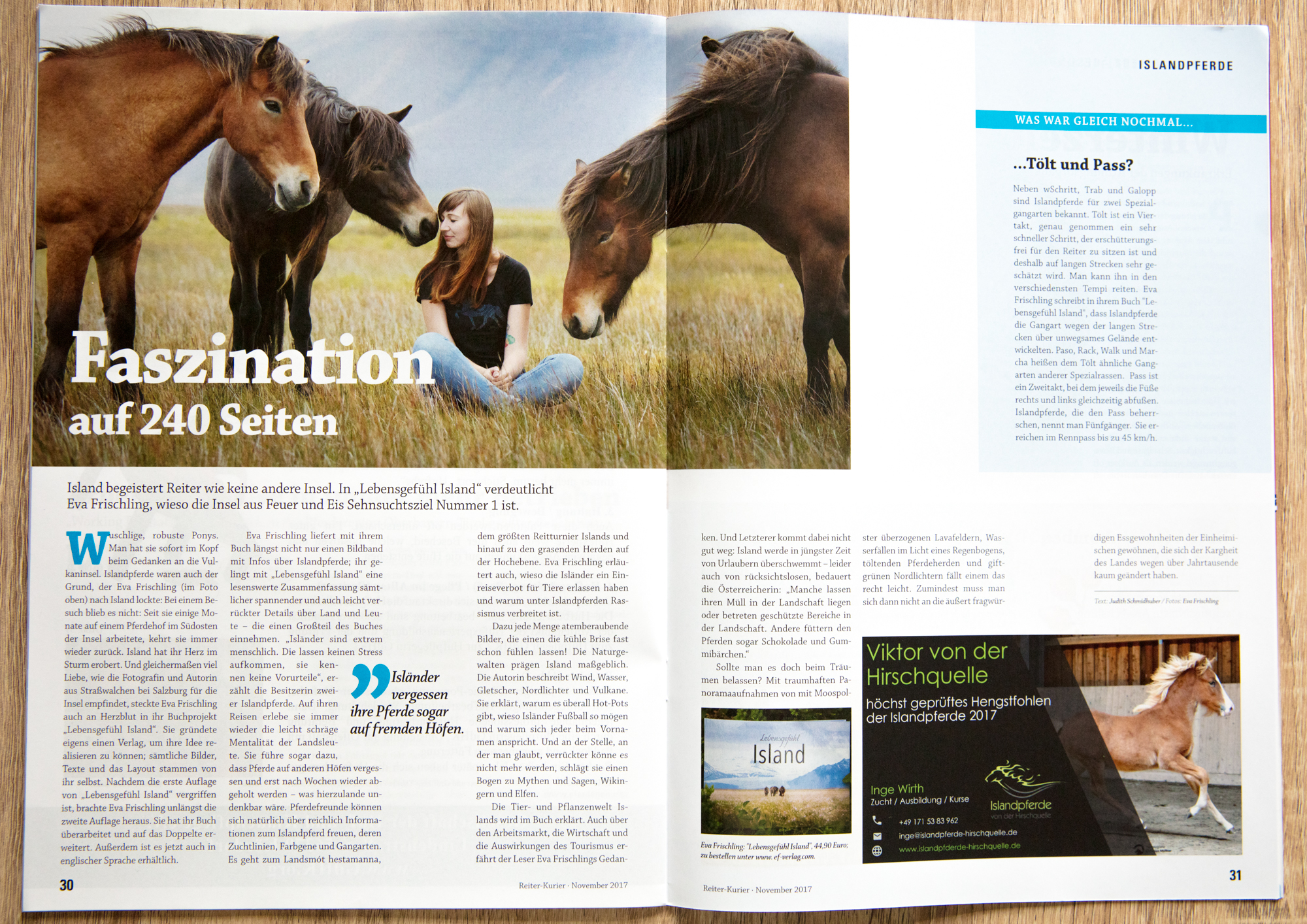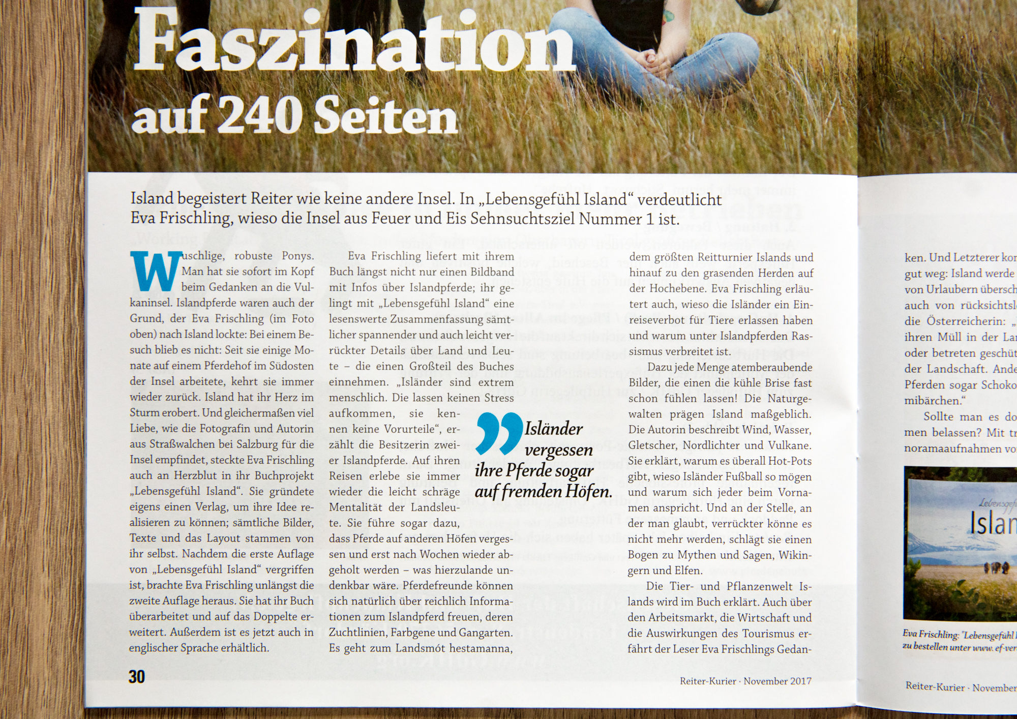 Eine weitere Buchvorstellung hab ich im Reiterkurier, in der Ausgabe des Novembers 2017 bekommen. Judith Schmidhuber hat einen tollen Text über mein Buch verfasst und ich habe eine Doppelseite dafür bekommen. Super cool einfach!