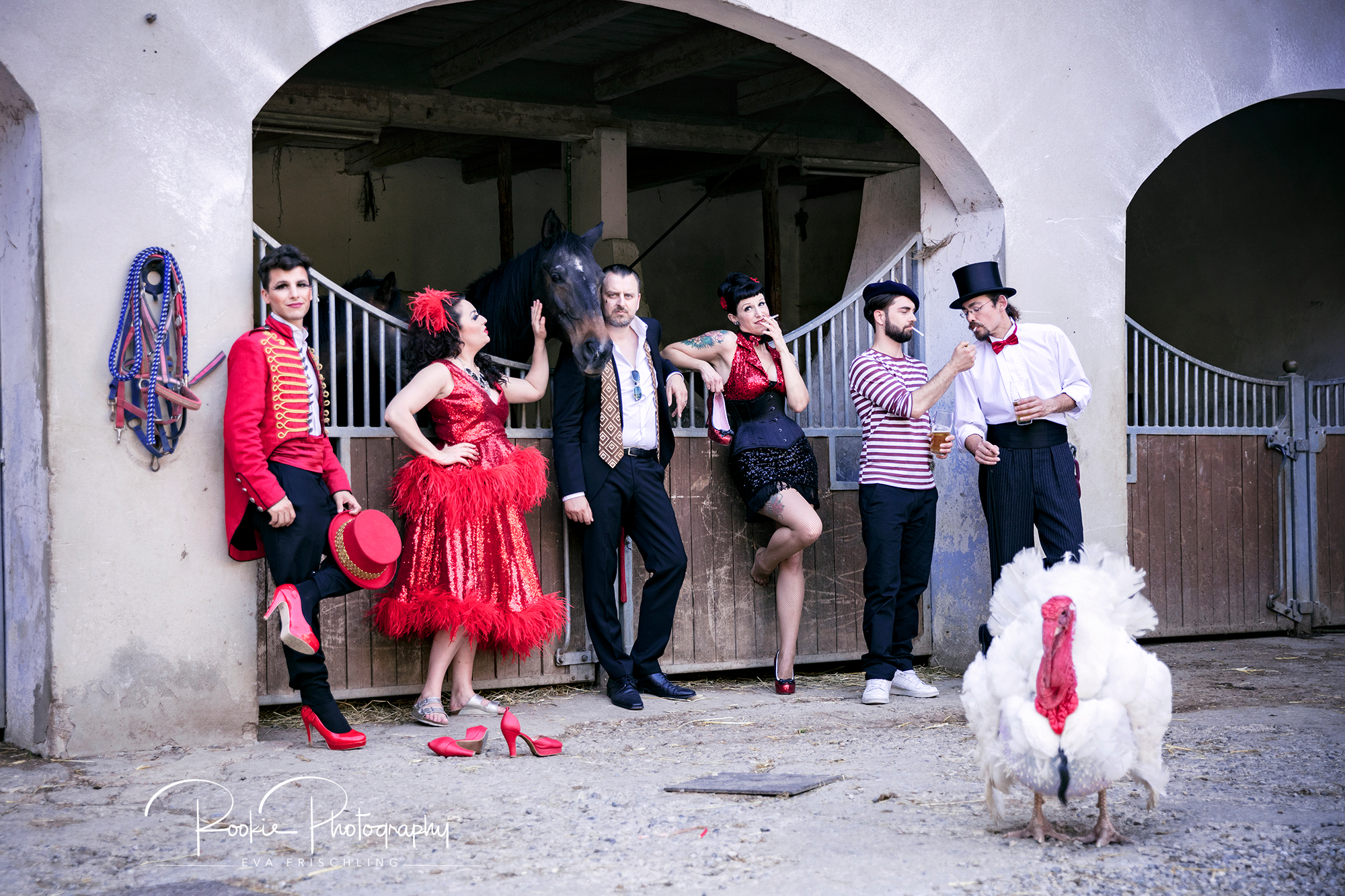 Wir trafen uns am Samstag Nachmittag bei wunderschönem Wetter bei Filmtier (www.film-tier.com) in Schnaitsee und hatten eine unglaublich große Auswahl an Tieren. Wir einigten uns dann auf einen Hasen, einen Biber, ein großes weißes Pferd, einen Esel, drei Hunde, ein Huhn und den Truthahn für das erste Bild, und die einfachste Tiere, also das Pferd, einen Hund, das Huhn und den Truthahn für das zweite Foto.