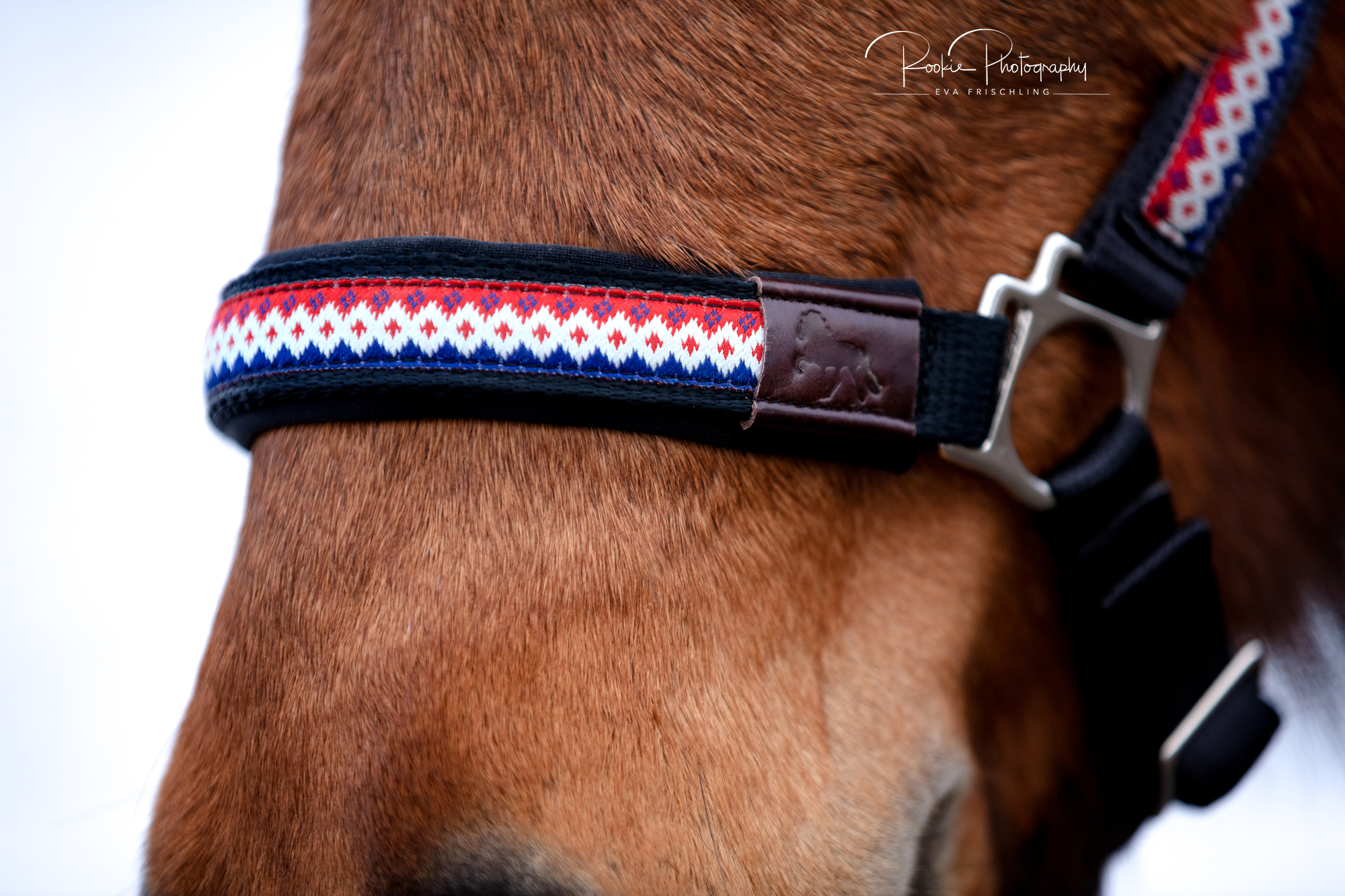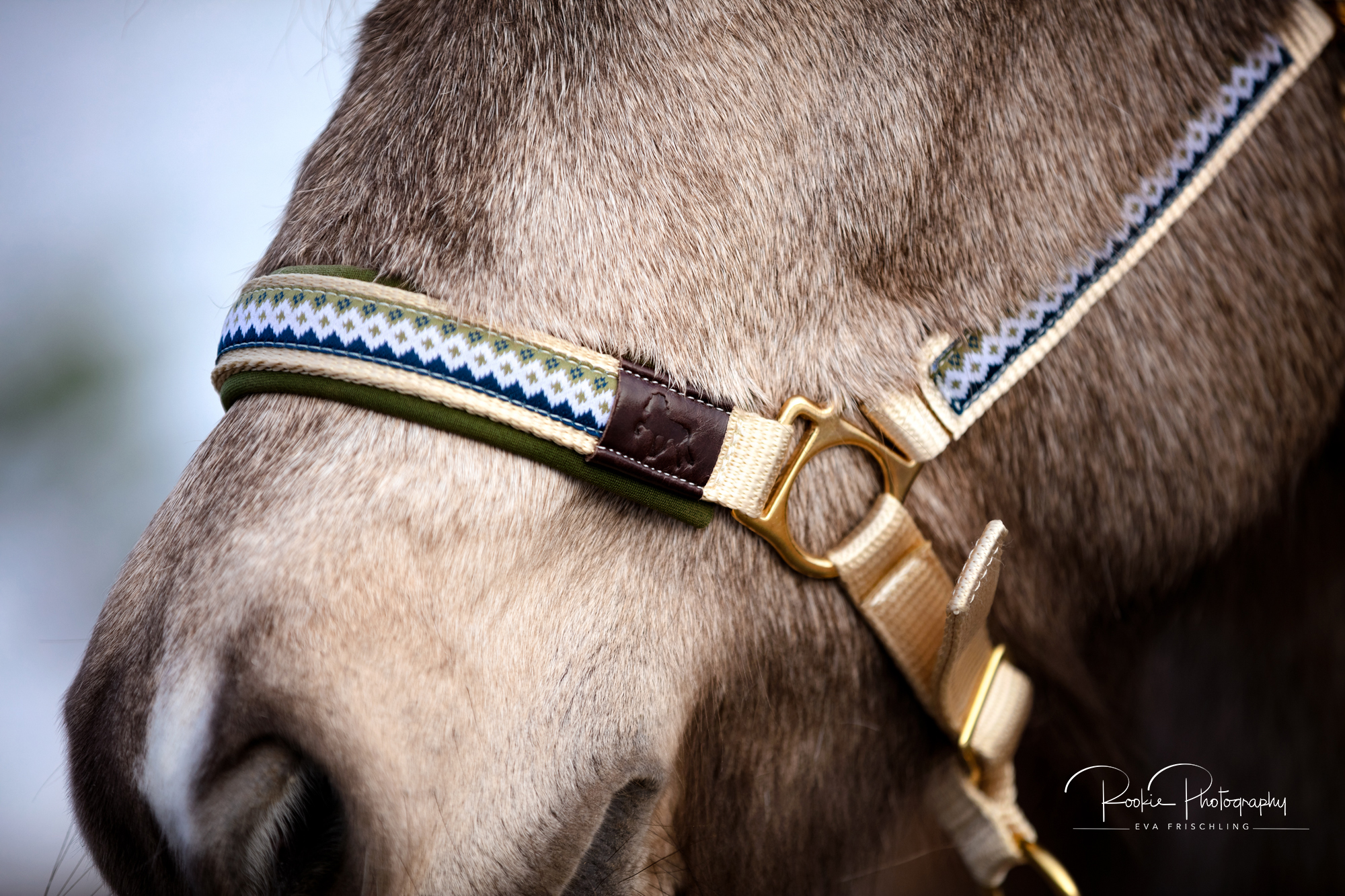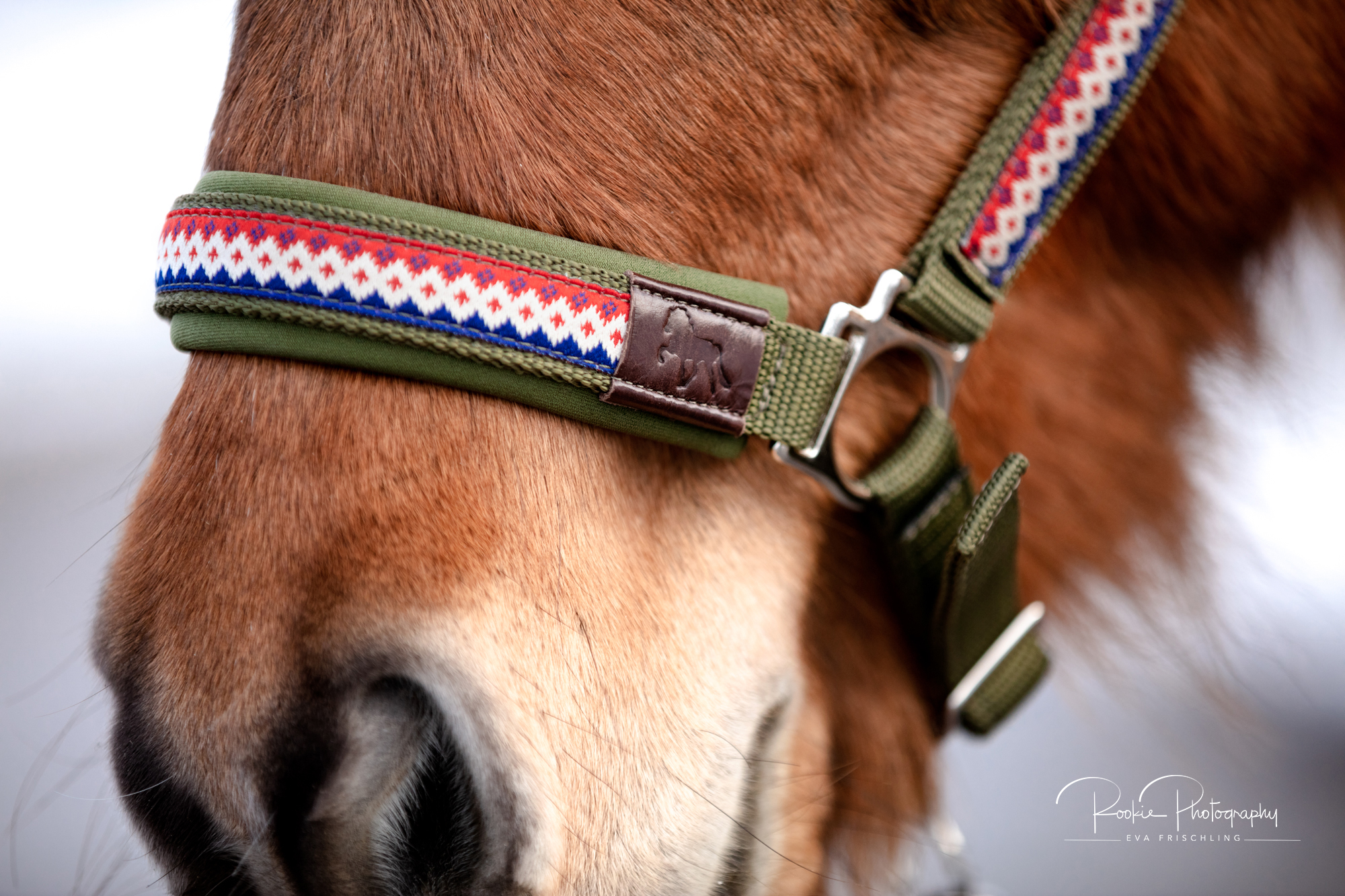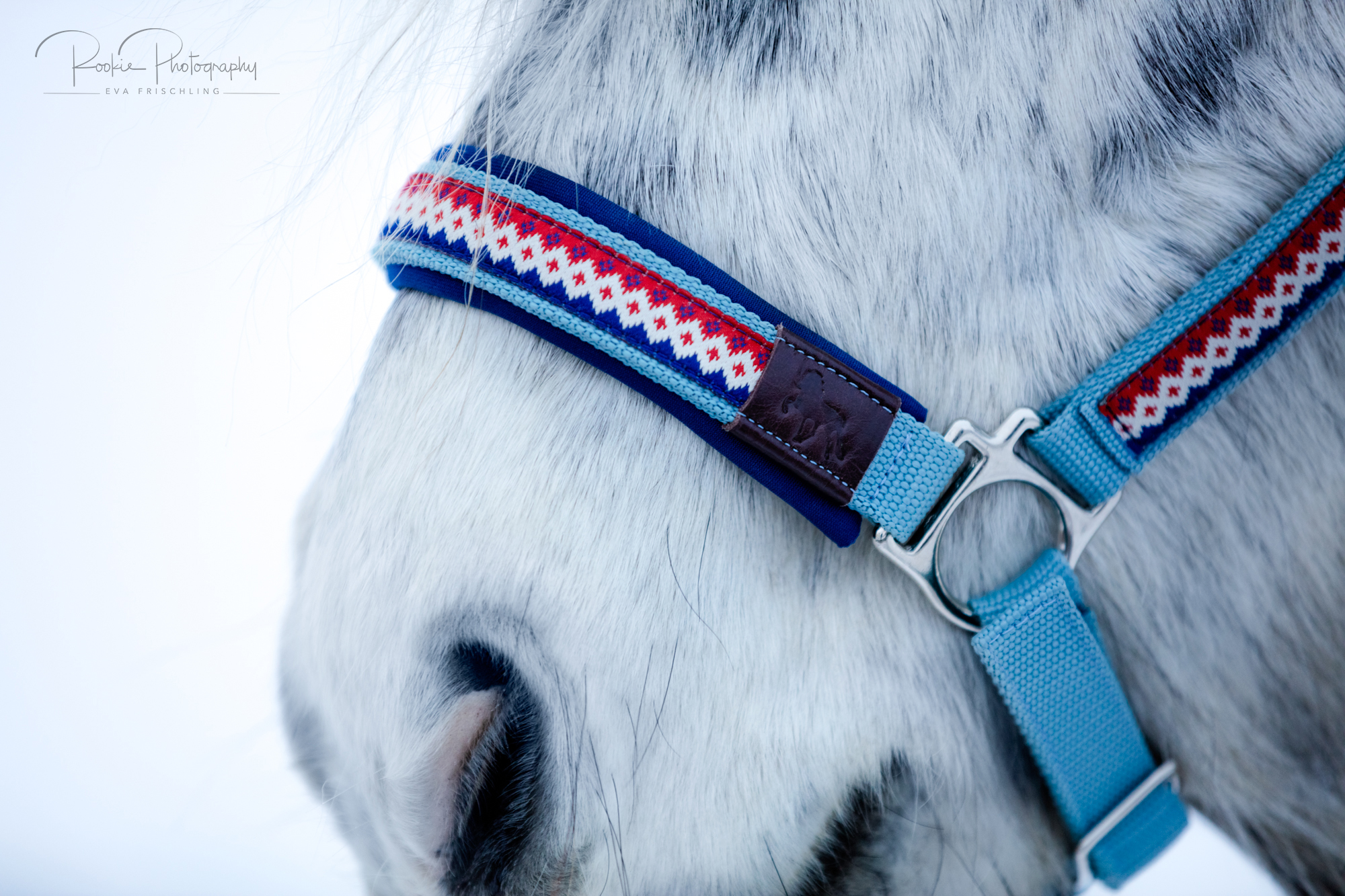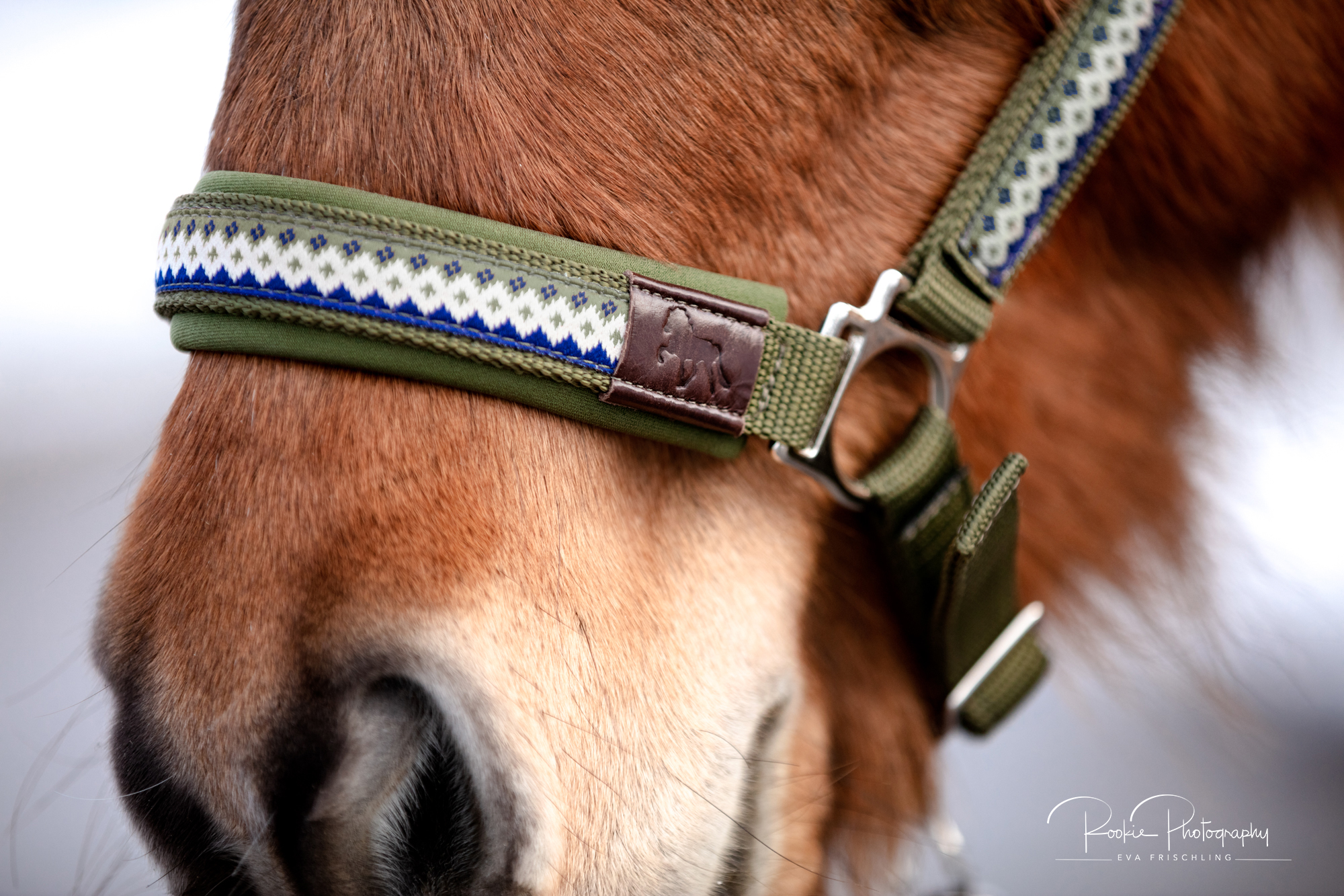 Pünktlich erhielt ich Anfang Dezember die Halfter und Führstricke und durfte sie auf verschiedenen Pferden fotografieren. Wir waren unter anderem am Gruber Gut in Irrsdorf, bei Chelsea in Oberhofen und bei Carina in Lochen.