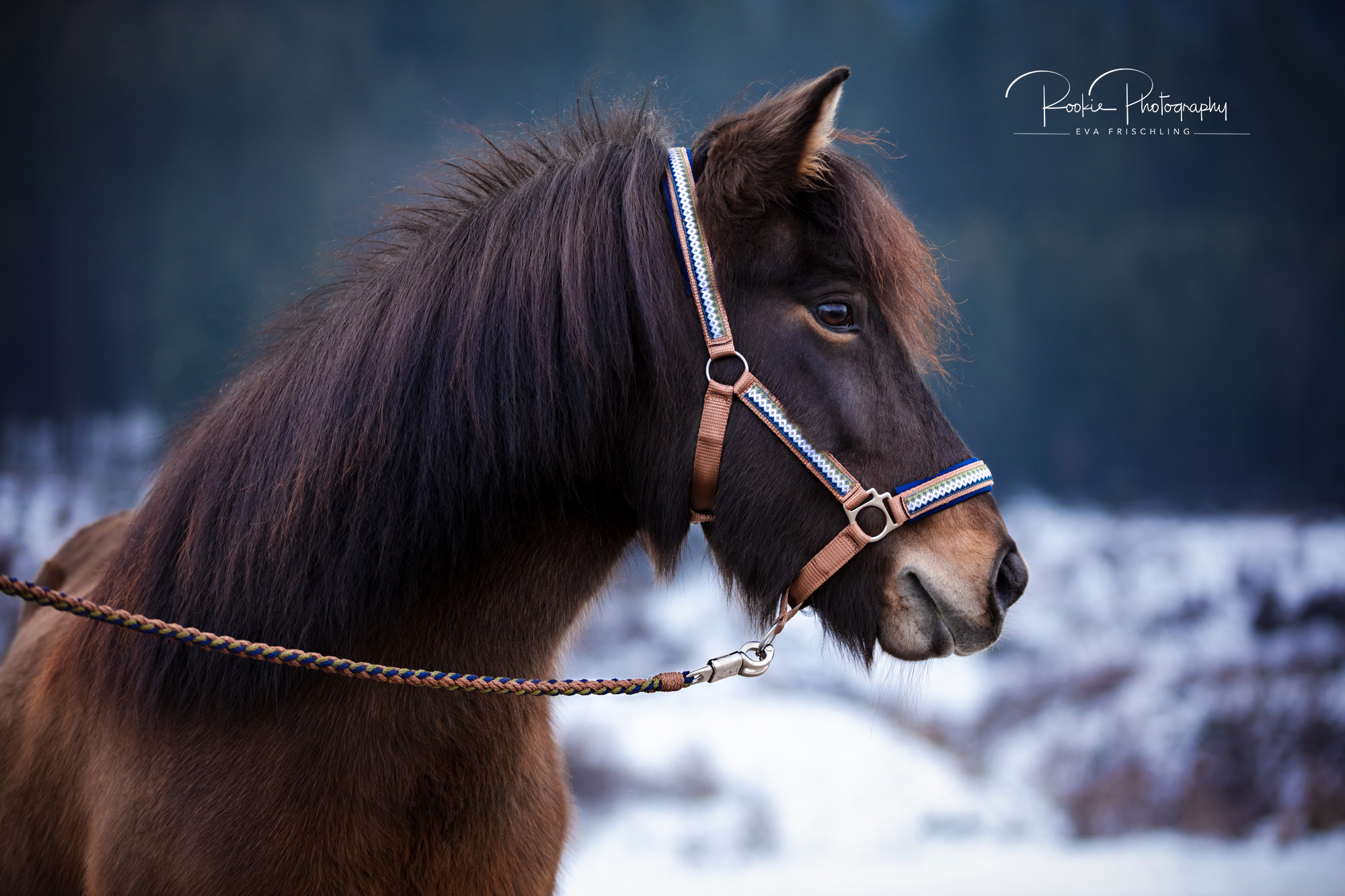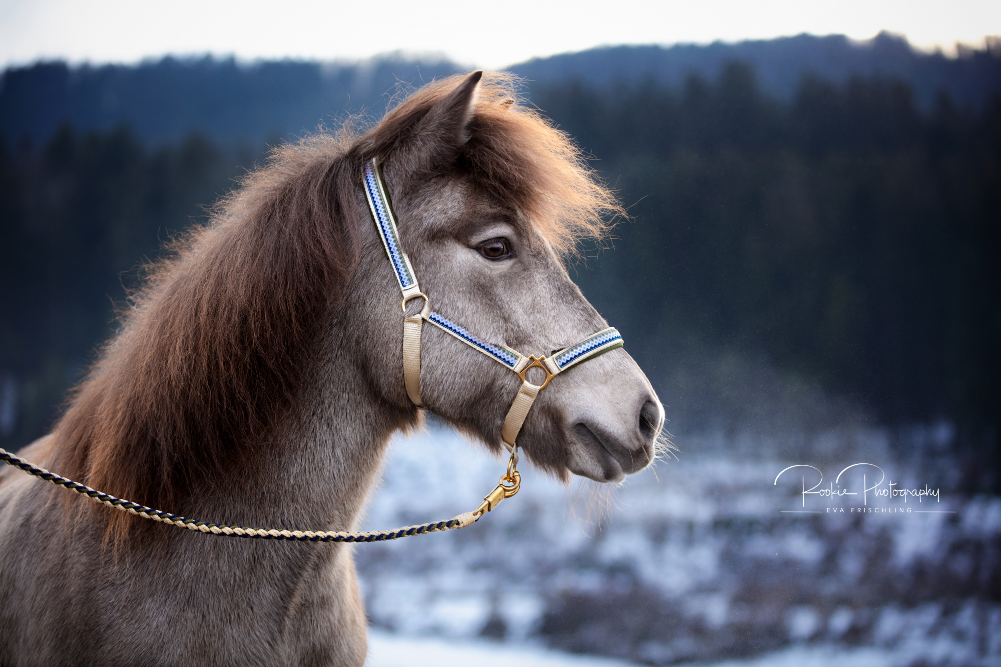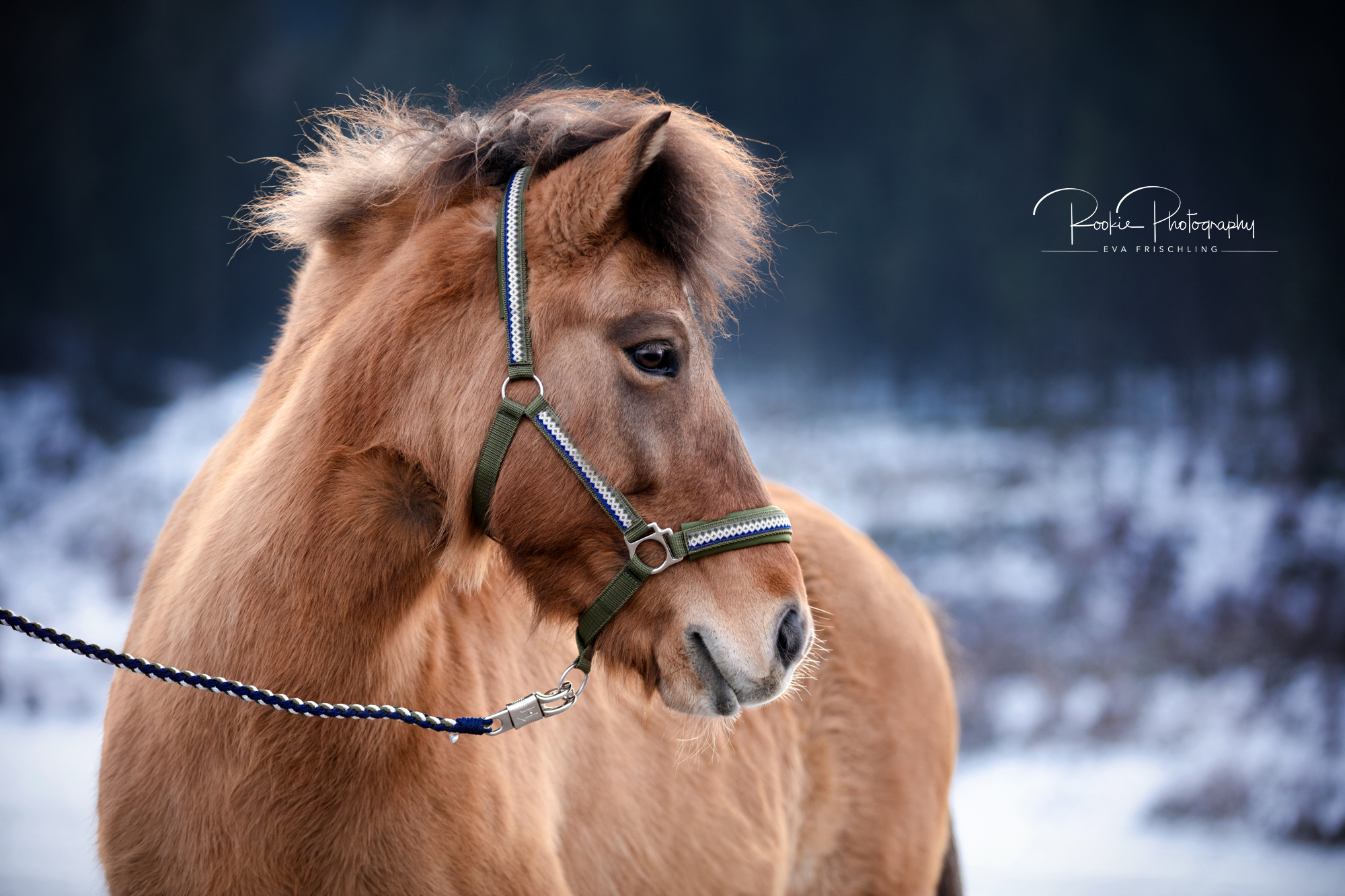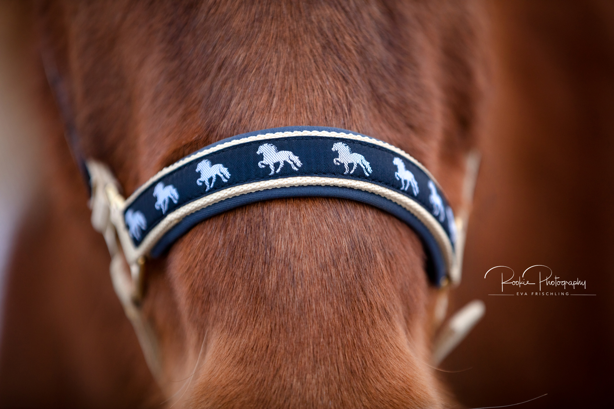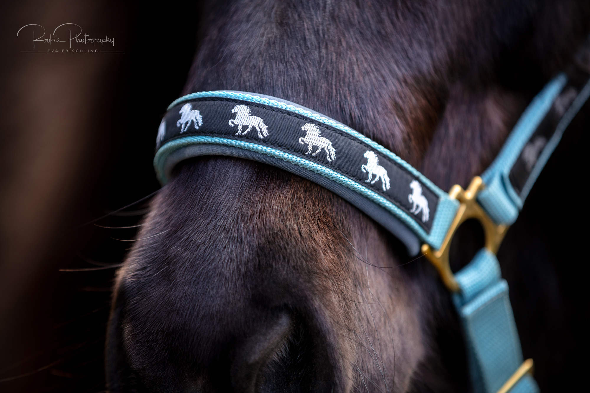 Pünktlich erhielt ich Anfang Dezember die Halfter und Führstricke und durfte sie auf verschiedenen Pferden fotografieren. Wir waren unter anderem am Gruber Gut in Irrsdorf, bei Chelsea in Oberhofen und bei Carina in Lochen.