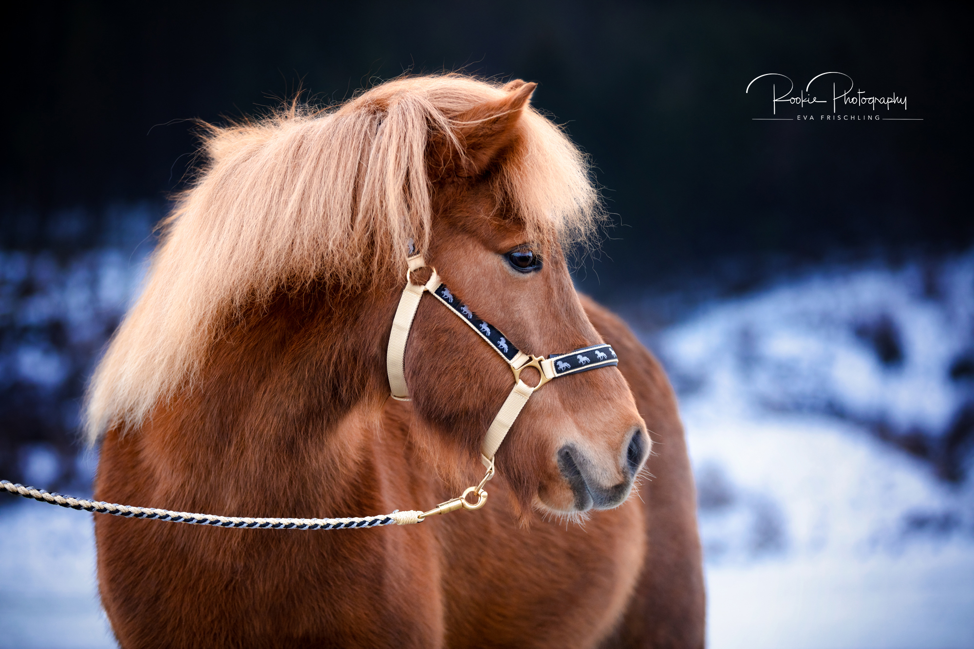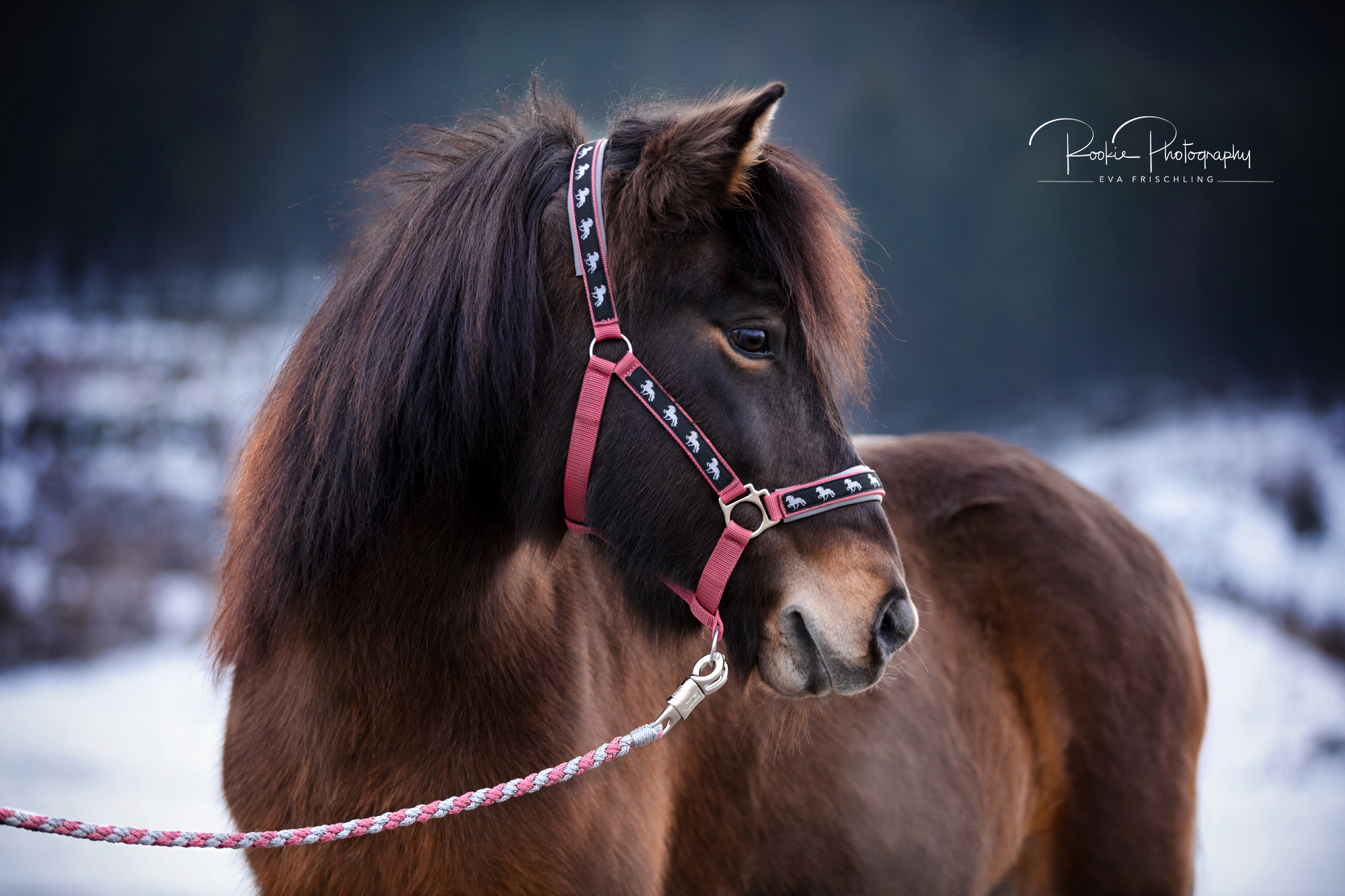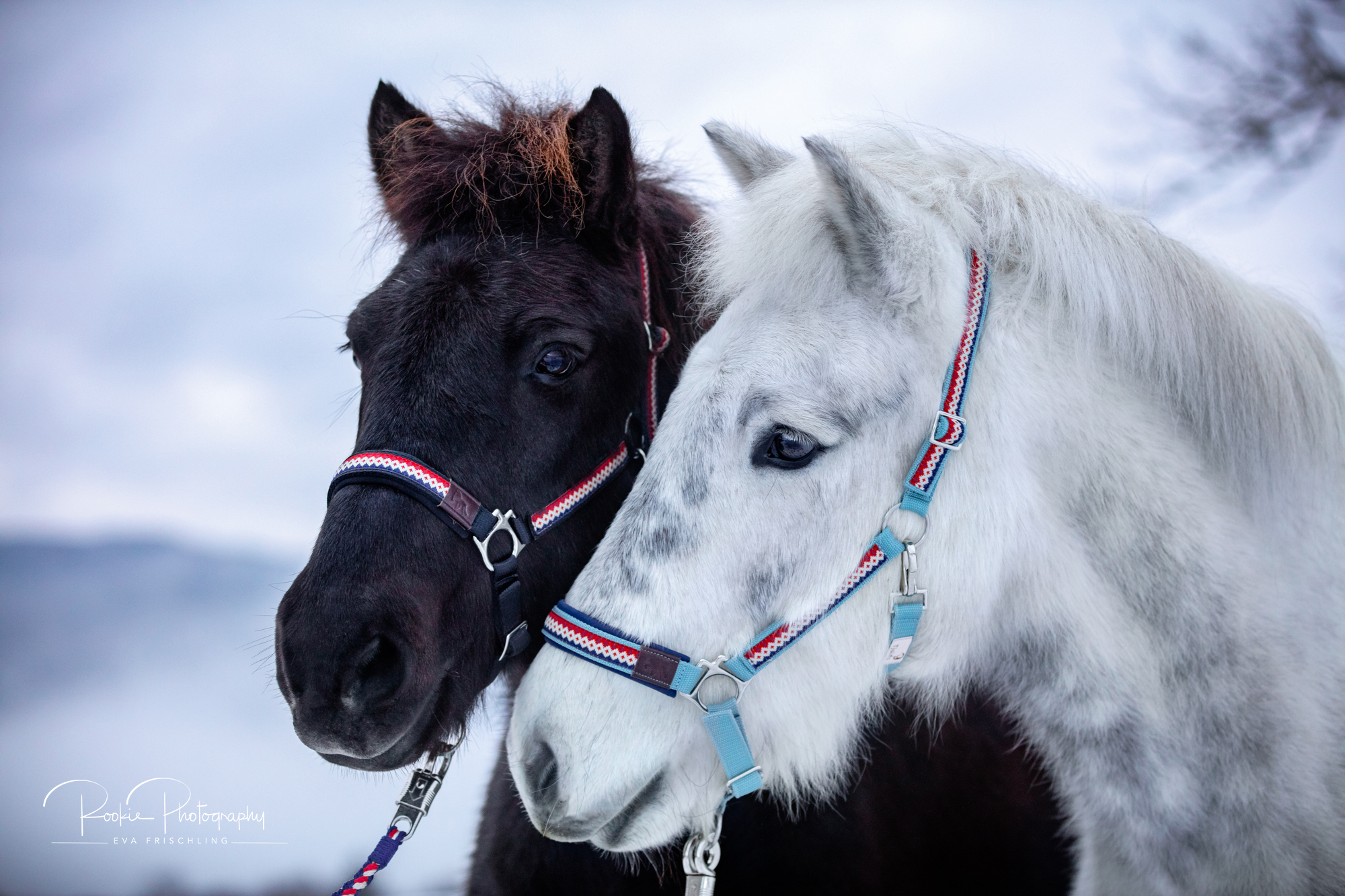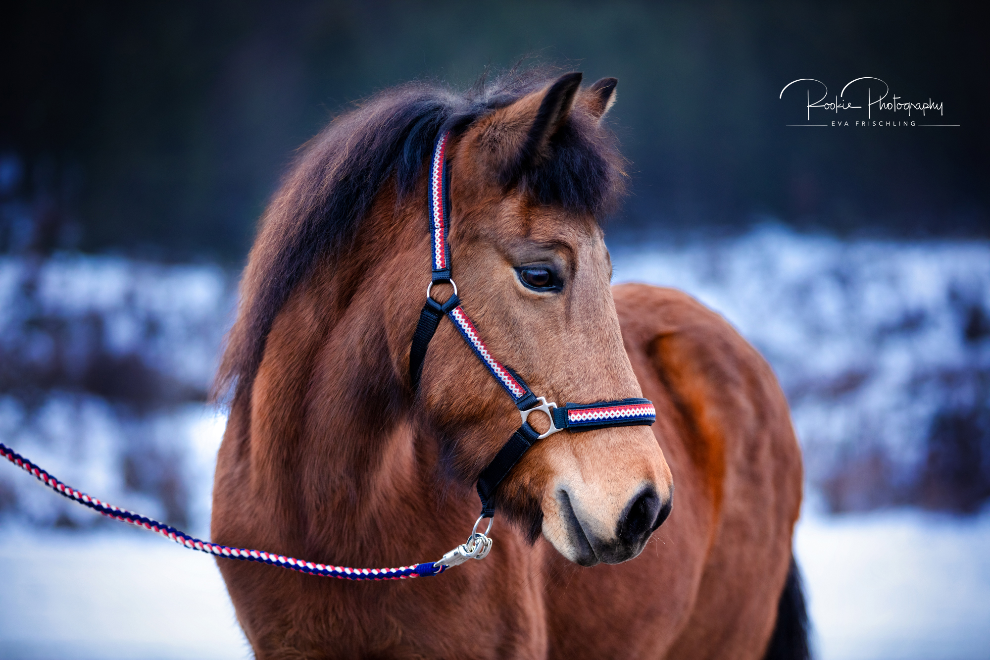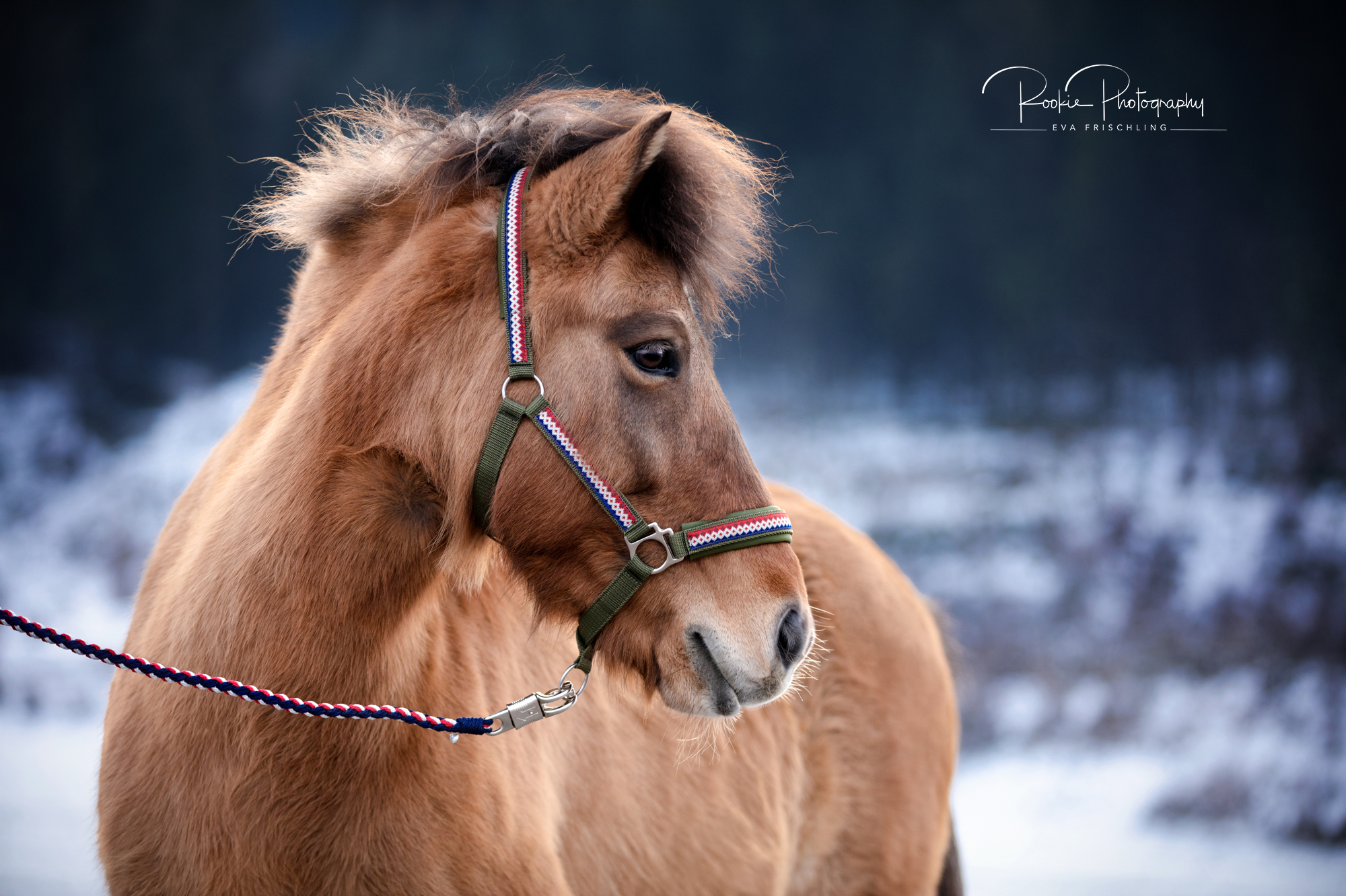 Pünktlich erhielt ich Anfang Dezember die Halfter und Führstricke und durfte sie auf verschiedenen Pferden fotografieren. Wir waren unter anderem am Gruber Gut in Irrsdorf, bei Chelsea in Oberhofen und bei Carina in Lochen.