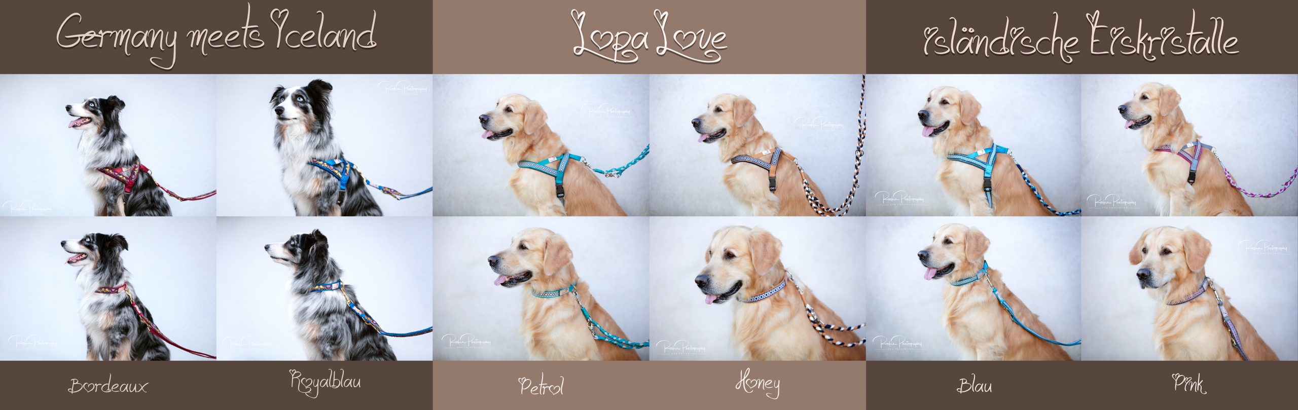 Vor einigen Tagen bekam ich von Tjalda zwei neue Aufträge. Den einen Auftrag verrate ich euch noch nicht, das zeige ich euch dann, sobald es fertig ist, der andere Auftrag war das Fotografieren der neuen Collection von den Hunde Halsbänder, Geschirre und Leinen.