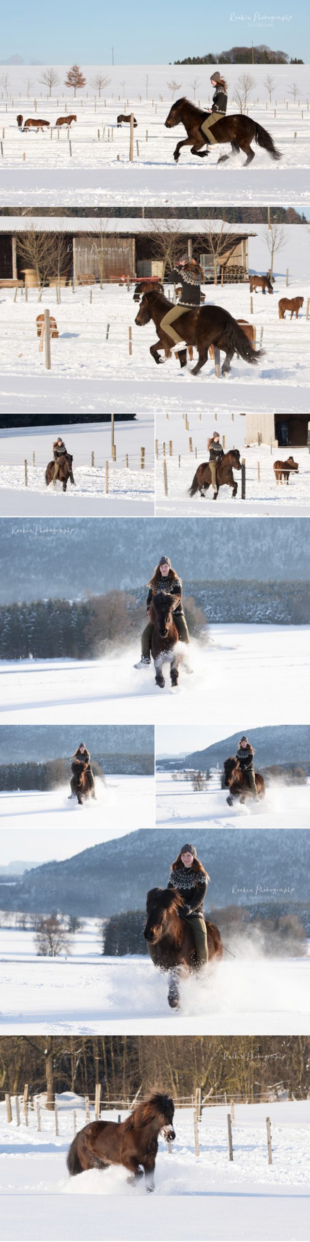 Ein paar Bildchen von mir und meinem Pferd Eldfari – ohne Sattel und ohne Zaumzeug im Tiefschnee. 😀