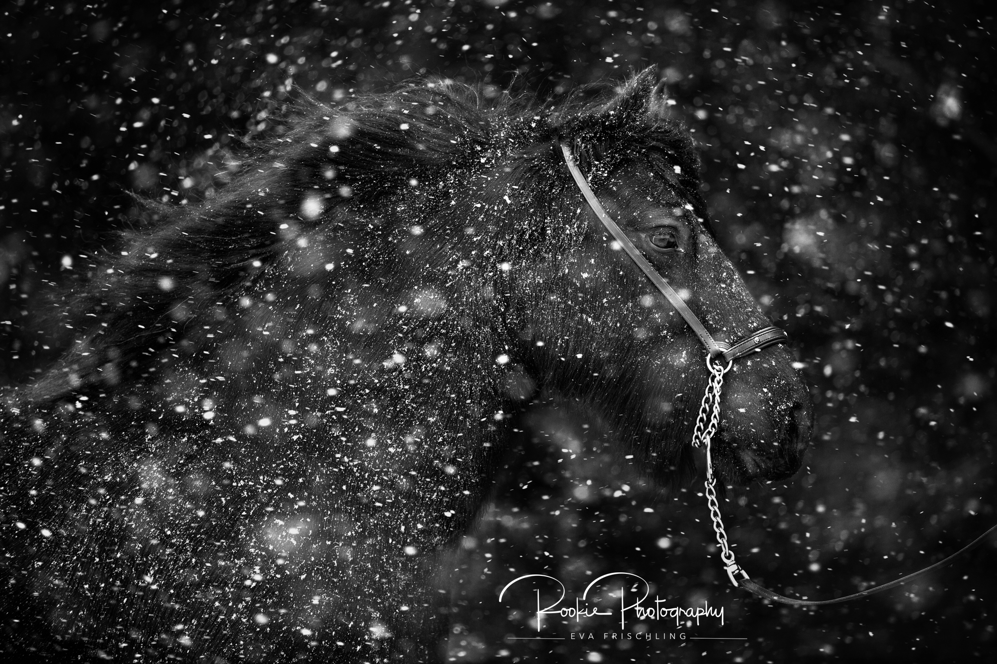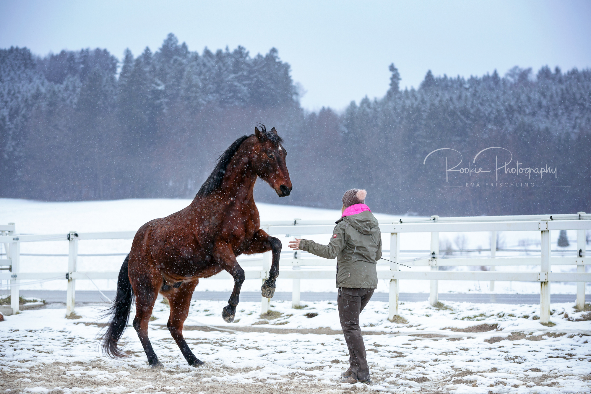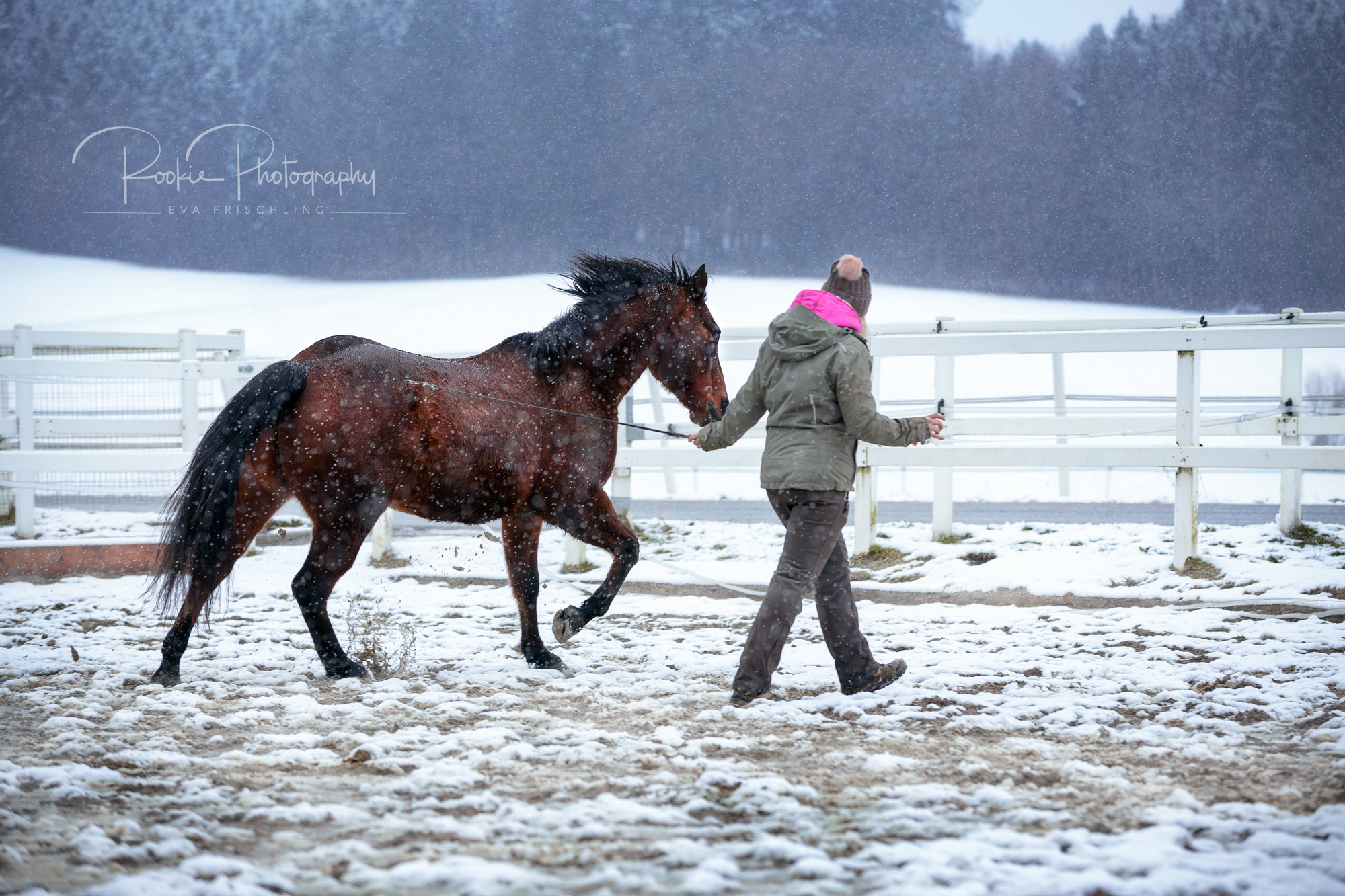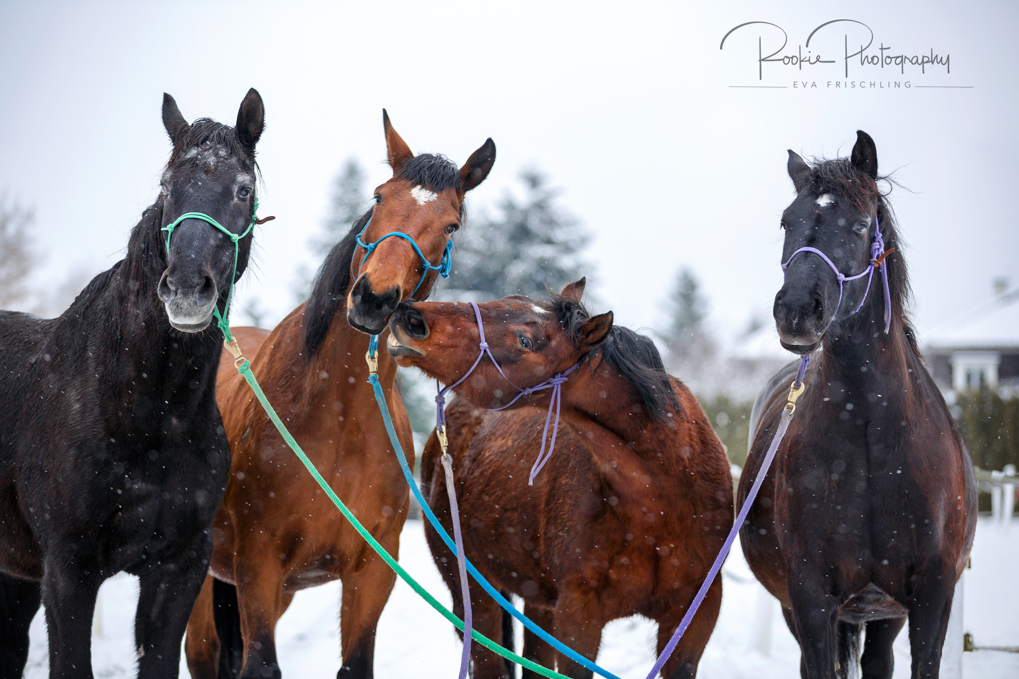 Am Sonntag starteten wir bei richtig viel Neuschnee (danke Frau Holle!) mit Photoshop in den Tag. Am späten Vormittag gab es dann noch vier freilaufende Pferde: Deja-Vue, Shadow, Calsan und Pazific. Auf Wunsch der Teilnehmer machten wir auch noch ein Gruppenbild der vier Pferde: