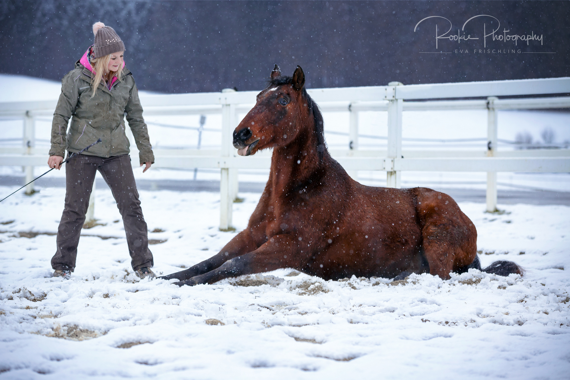 Am Samstag glühten unsere Kameras heiß: denn wir hatten nun das Pferd mit Menschen bestmöglich einzufangen. Den Anfang machte Laura mit Calsan in der Freiheitsdressur: