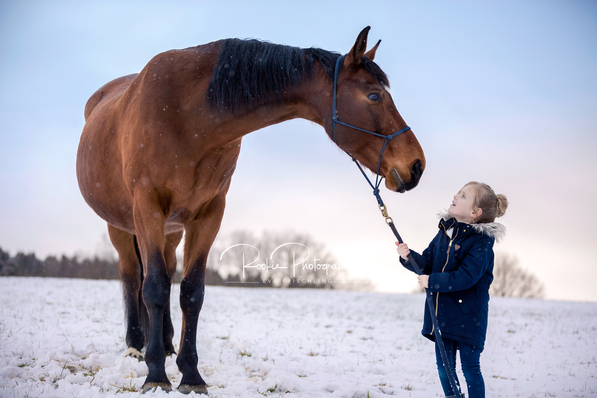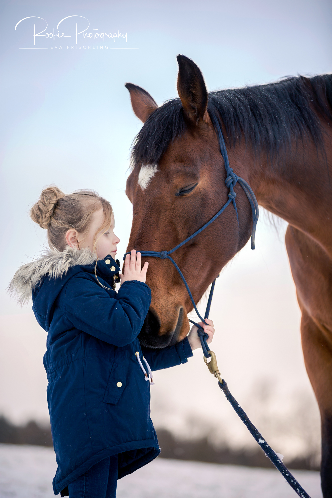 Bei ganz gutem Wetterverhältnis stand dann unser kleinstes Model Sophie, mit dem größten Pferd, Shadow, für uns bereit. Die Kleine war der absolute Hammer! Sie hatte absolut keine Angst vor dem großen Wallach, und auch dieser stand Seelenruhig da, und wartete ab, was er machen soll. Einfach Zucker die Beiden! Richtig cool war, als dann hinter uns der bedeckte Himmel aufriss, und wir einen total schönen Himmel bekamen.
