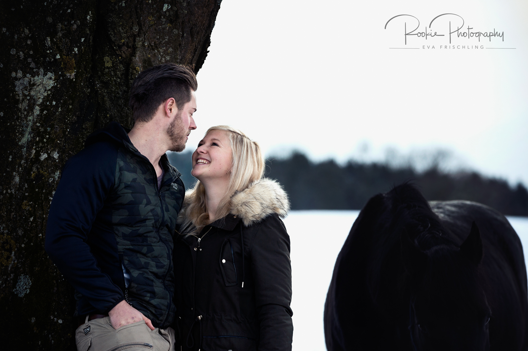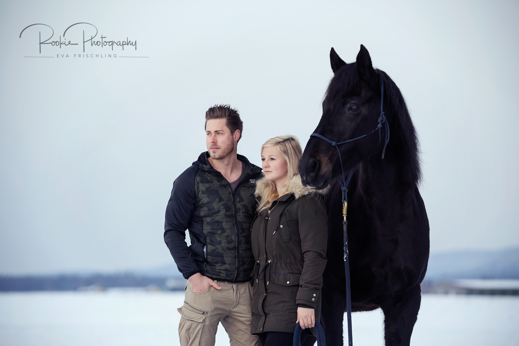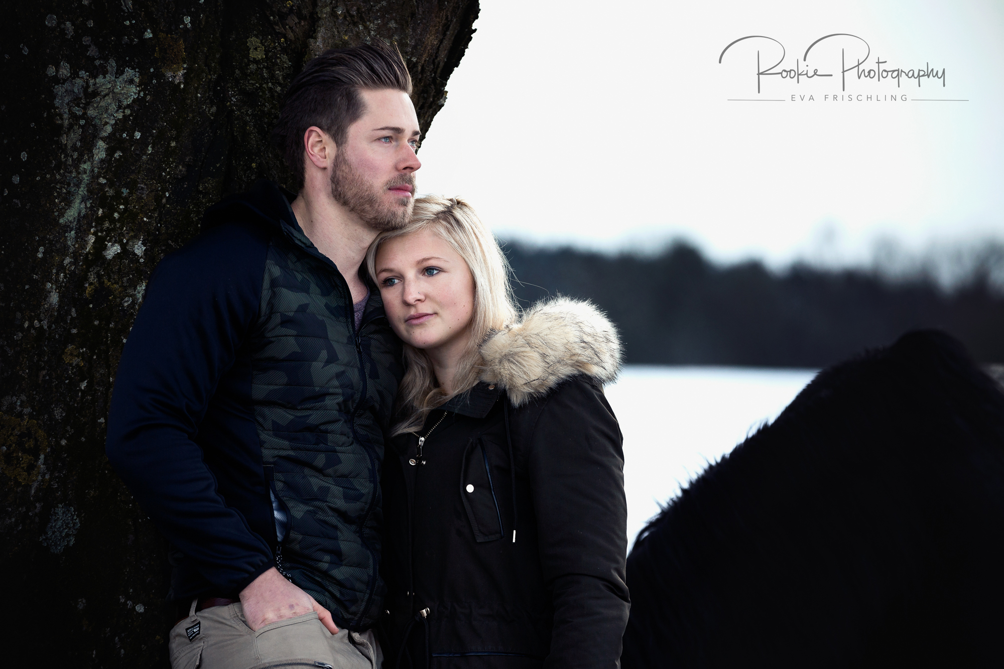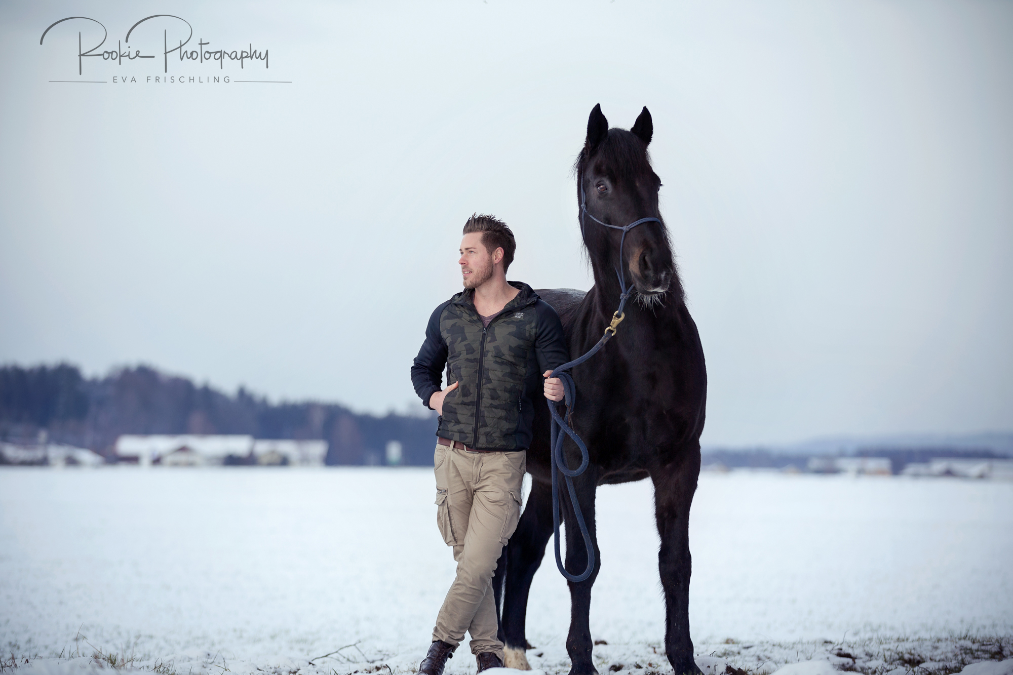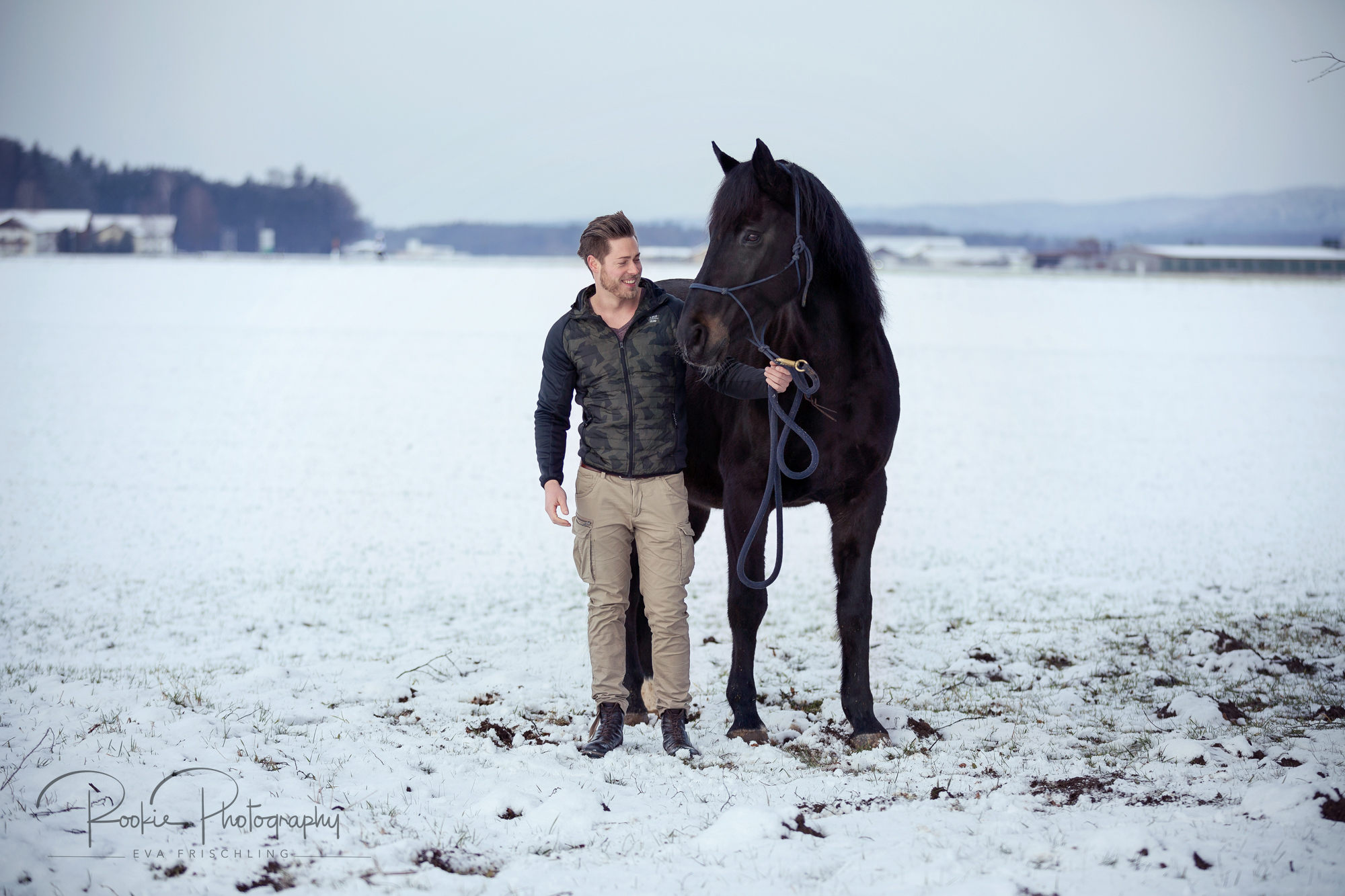 Nach den Kuschelbildern stand dann auch schon Georg und Laura mit dem Wallach Ikarus bereit. Als erstes fotografierten wir Georg und Ikarus gemeinsam – ganz nach dem Motto: „anti-kuschel-Bilder“. Und danach kam Laura noch hinzu, für ein paar Pärchen-Bilder mit Pferd. Das war ganz große Klasse, wie alle ihre Sache gemeistert haben!